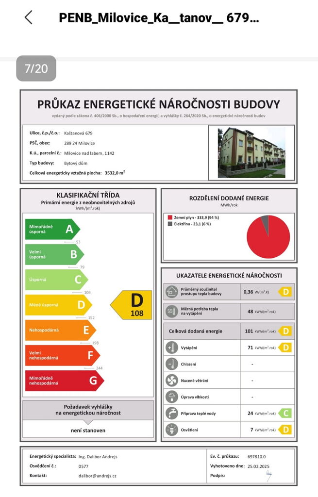 - Energetický ukazatel podle vyhlášky: č. 264/2020 Sb.
