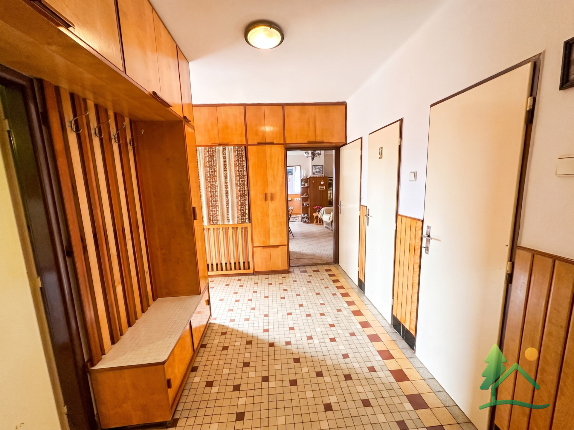 Zahrada nabízí záhony pro pěstování i vzrostlé plodící stromy (ořešáky, švestky, jabloně, meruňka, třešeň), což z této nemovitosti dělá ideální místo pro ty, kteří chtějí být více soběstační.