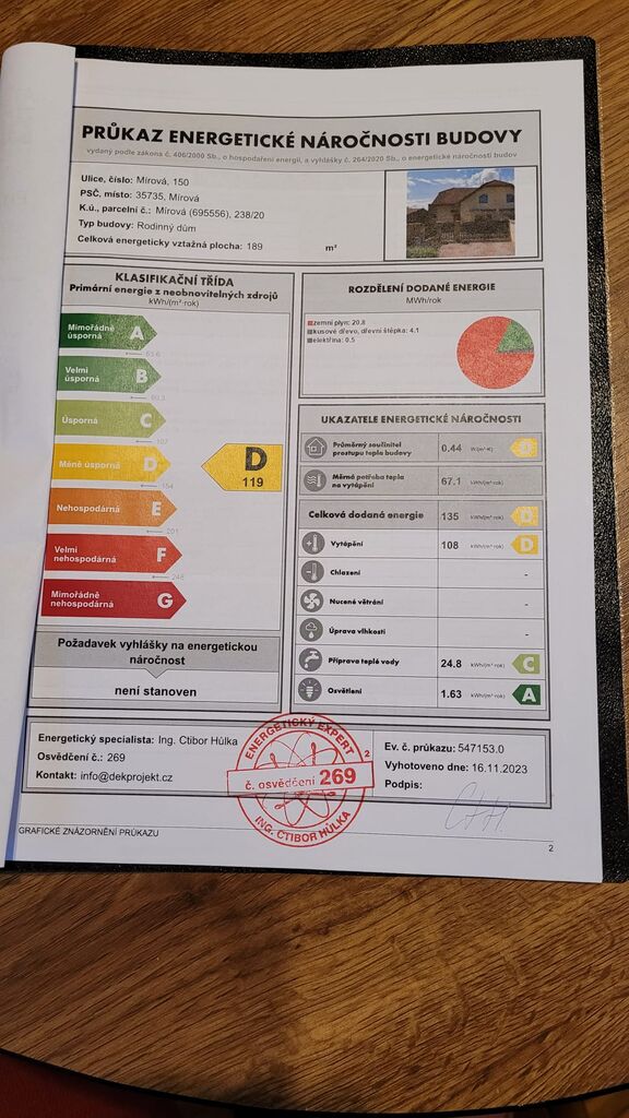 - Energetická náročnost budovy: D - Méně úsporná