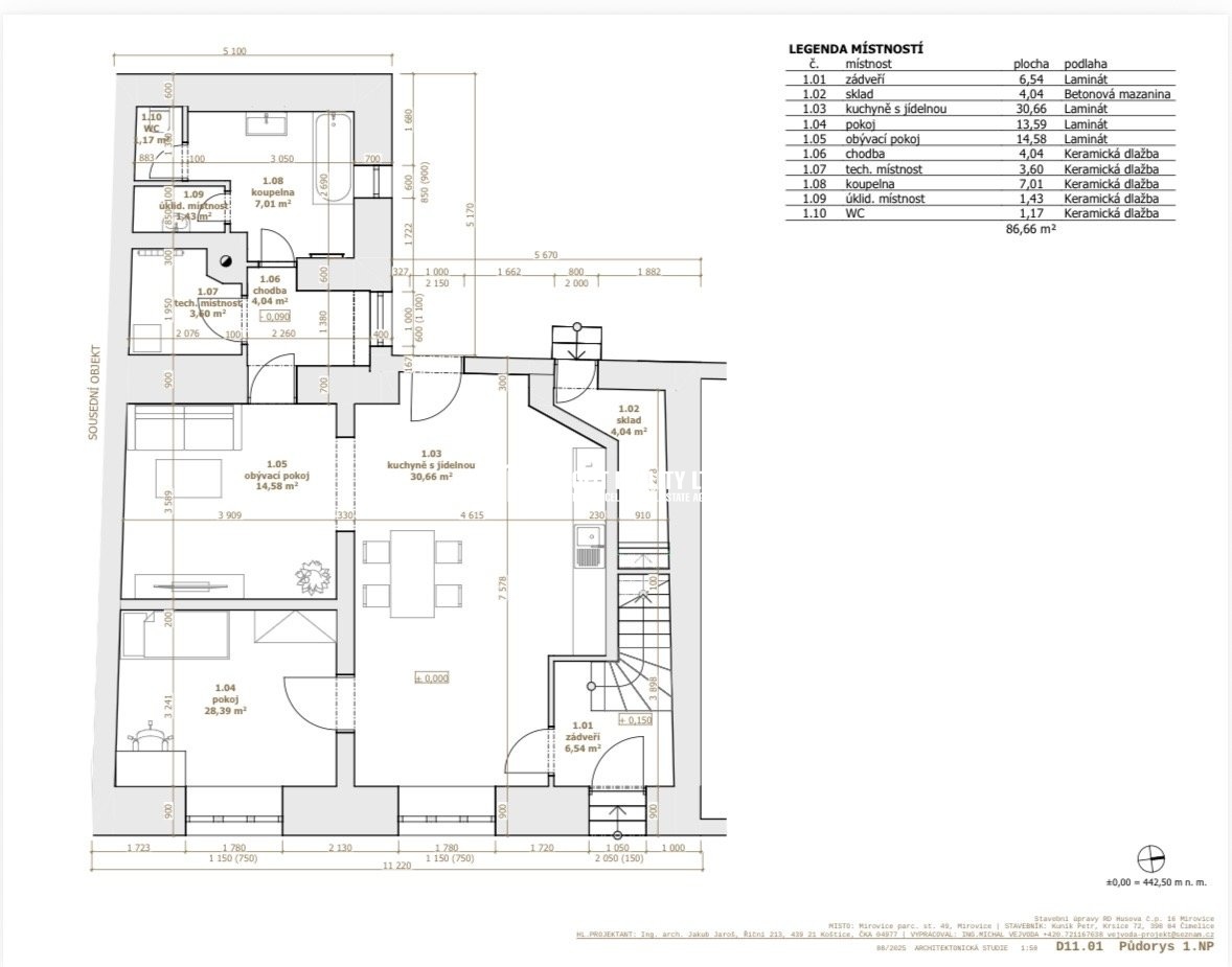 - Ukazatel energetické náročnosti budovy: 105 kWh/m²
