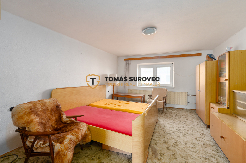 V přízemí domu se nachází dispozice 3+1, kde kolem roku 2005 proběhla částečná rekonstrukce. Najdete zde kuchyni, obývací pokoj, ložnici a průchozí pokoj s krbovými kamny, která dodávají interiéru útulnou atmosféru. Součástí úprav jsou také nové rozvody elektřiny a topení v mědi v celém přízemí. Z kuchyně se dostanete do koupelny i do haly se vstupem na zahradu a schodištěm do patra, kde jsou dva pokoje v původním stavu a galerie se vstupem do skladu.