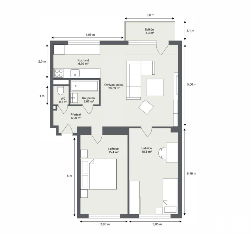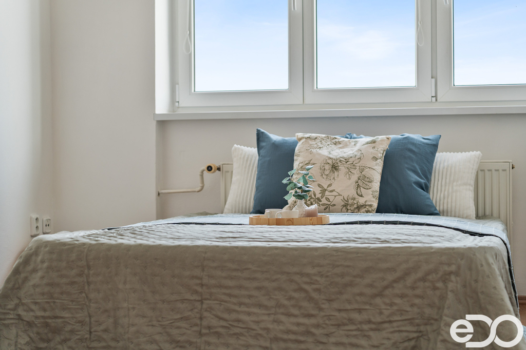 Byt o užitné ploše 71,45 m² nabízí praktické uspořádání s oddělenou kuchyní, prostorným obývacím pokojem a dvěma ložnicemi. Čeká Vás také nový kuchyňský kout s moderní linkou, myčkou, plynovým sporákem, troubou i digestoří – prostě všechno, co potřebujete ke klidnému bydlení. O pohodlí se postará i balkon orientovaný do zeleného vnitrobloku, kde si můžete vychutnat ranní kávu nebo letní večeře. K bytu navíc náleží sklep (5,6 m²), což zajišťuje dostatek místa pro všechno, co zrovna nepotřebujete mít po ruce - od zavařovaček přes jízdní kola až po pneumatiky.