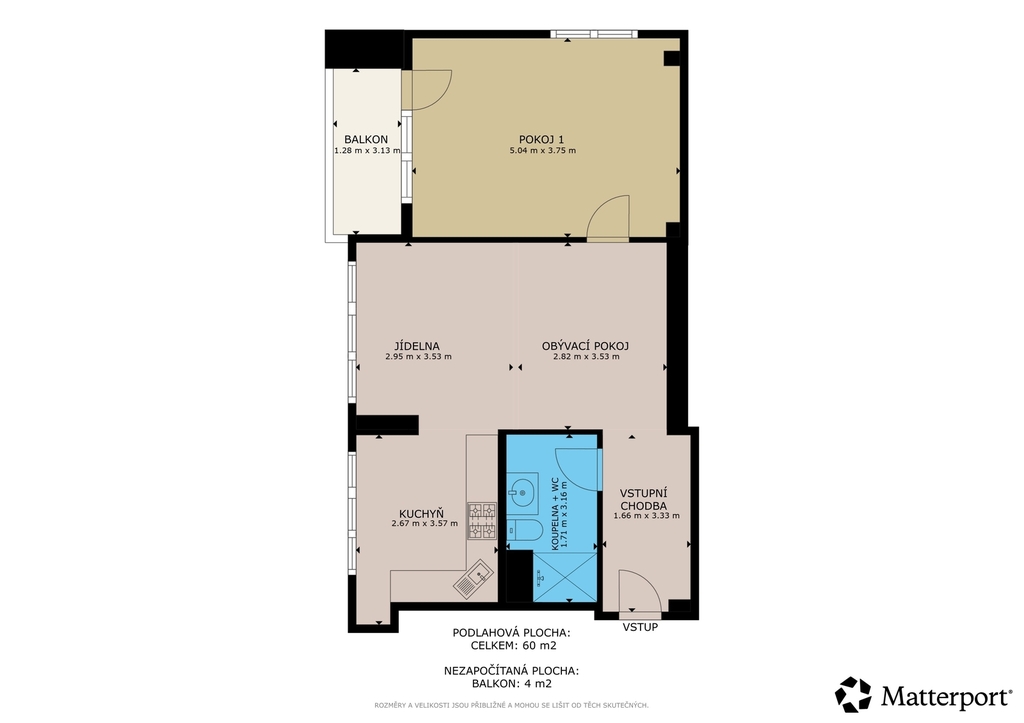 - Užitná plocha: 60 m²