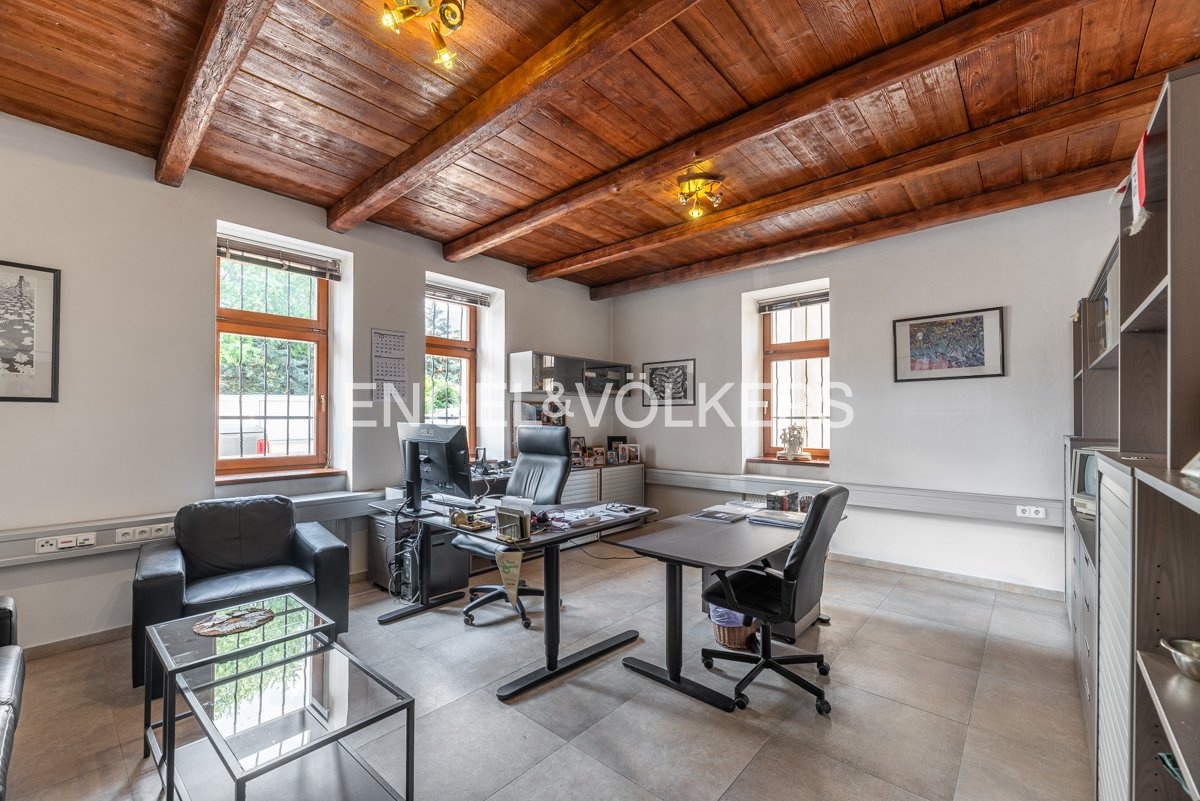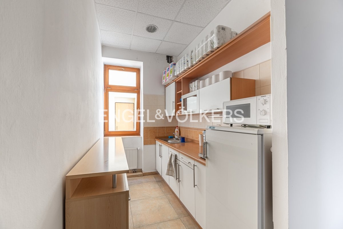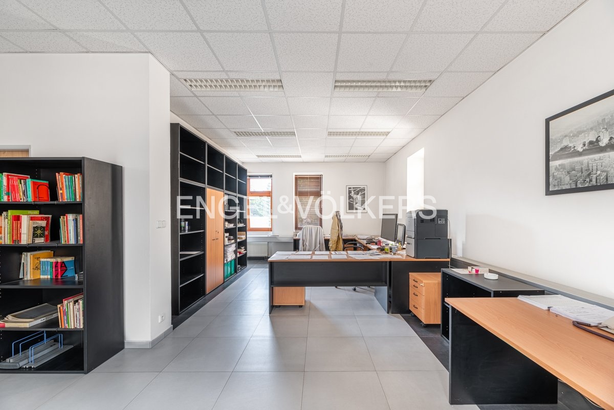 Funkční celek kanceláří, skladové haly a bytové jednotky, vjezd do uzavřeného vnitrobloku. Objekt není zatížen nájemní smlouvou, možnost sjednání nájmu s majitelem po prodeji. Potenciál další nástavby až cca 587 m².