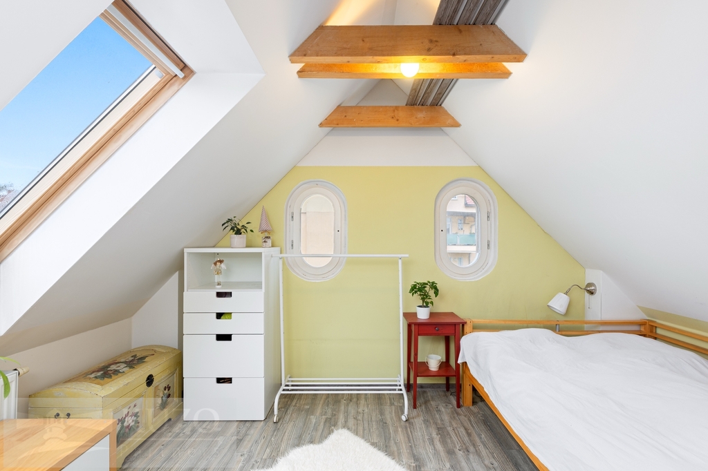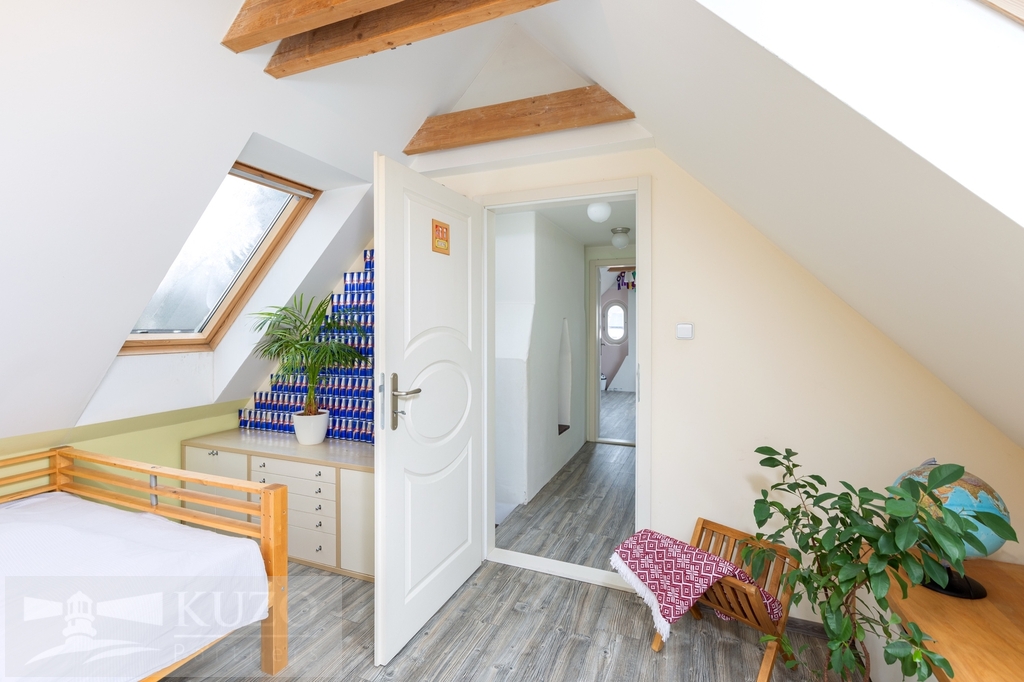 Z obývací části vedou schody do horního patra mezonetu, kde se nachází další dva pokoje a místnost s přípravou na druhou koupelnu s WC, což nabízí možnost dalšího komfortního rozšíření bydlení dle vlastních potřeb.