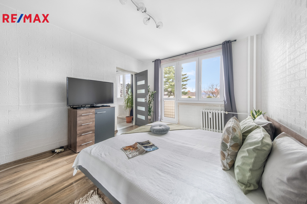Dispozičně je byt řešen velmi chytře: nabízí dva samostatné pokoje, každý s vlastním vstupem na lodžii. Z obou pokojů je přístup do kuchyně s jídelnou, odkud se vychází na třetí lodžii. Jeden z pokojů má dvoje dveře, což dává zajímavý potenciál pro úpravu na spací kout a oddělený obývací prostor. Byt tak může být plnohodnotně využitelný i pro rodinu s dětmi. Zároveň je vhodný jako investice, včetně možnosti sdíleného pronájmu, kdy mají obyvatelé díky dvěma samostatným pokojům dostatek soukromí.
