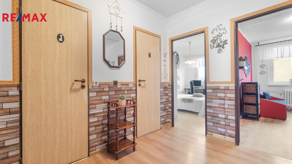 Dispozičně byt nabízí obývací pokoj, kuchyni, ložnici, další pokoj, koupelnu, samostatné WC a chodbu. Součástí bytu je balkon o velikosti lehce přes 5 m², který poskytuje příjemný prostor k posezení, a také sklepní kóje.