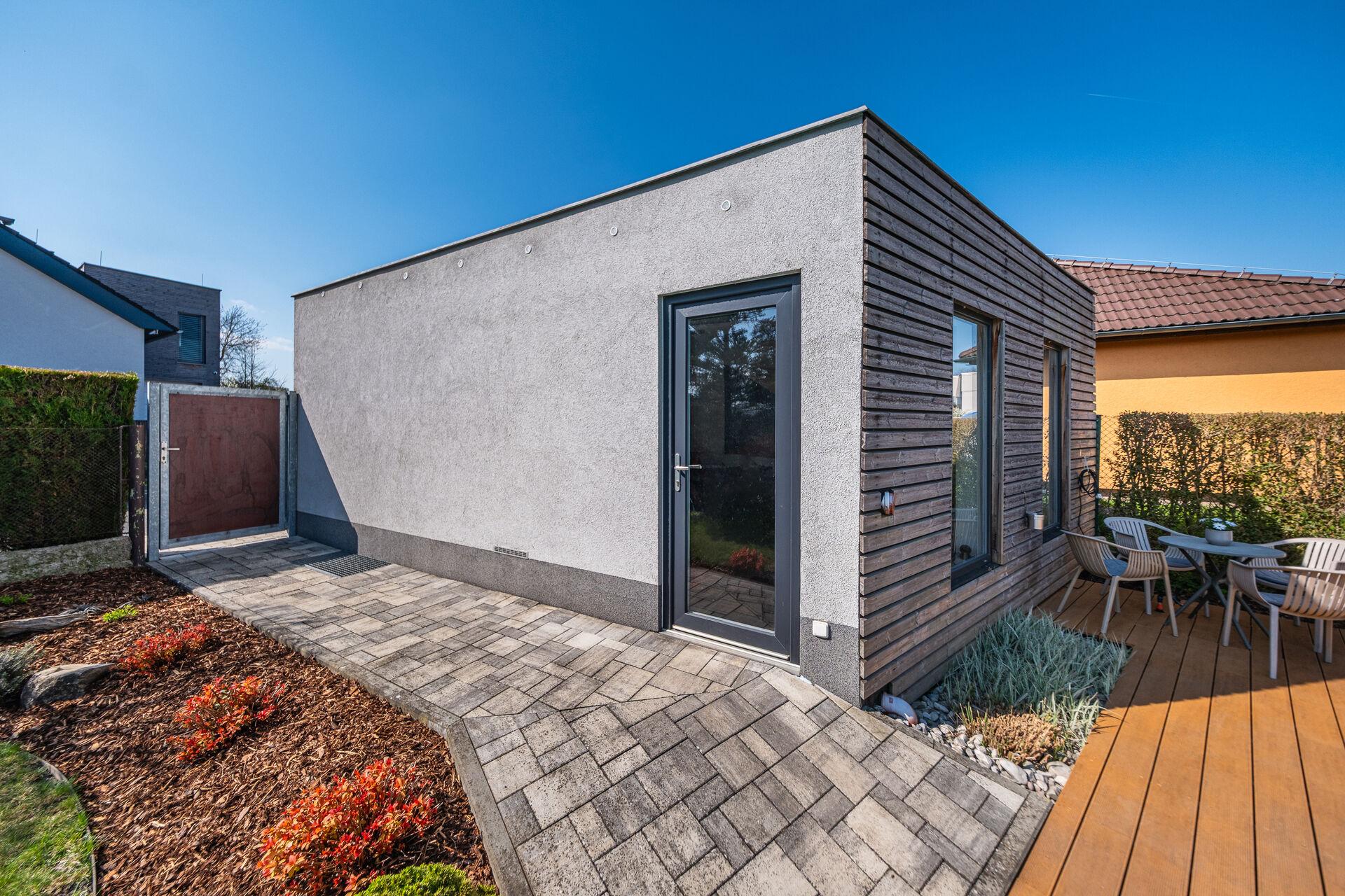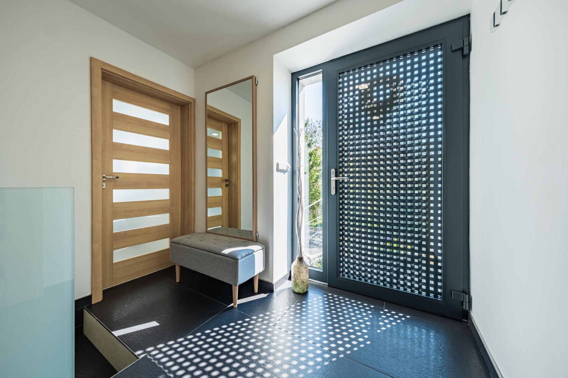 – plastová okna s hliníkovým exteriérem a venkovními žaluziemi (komfort i bezpečí)