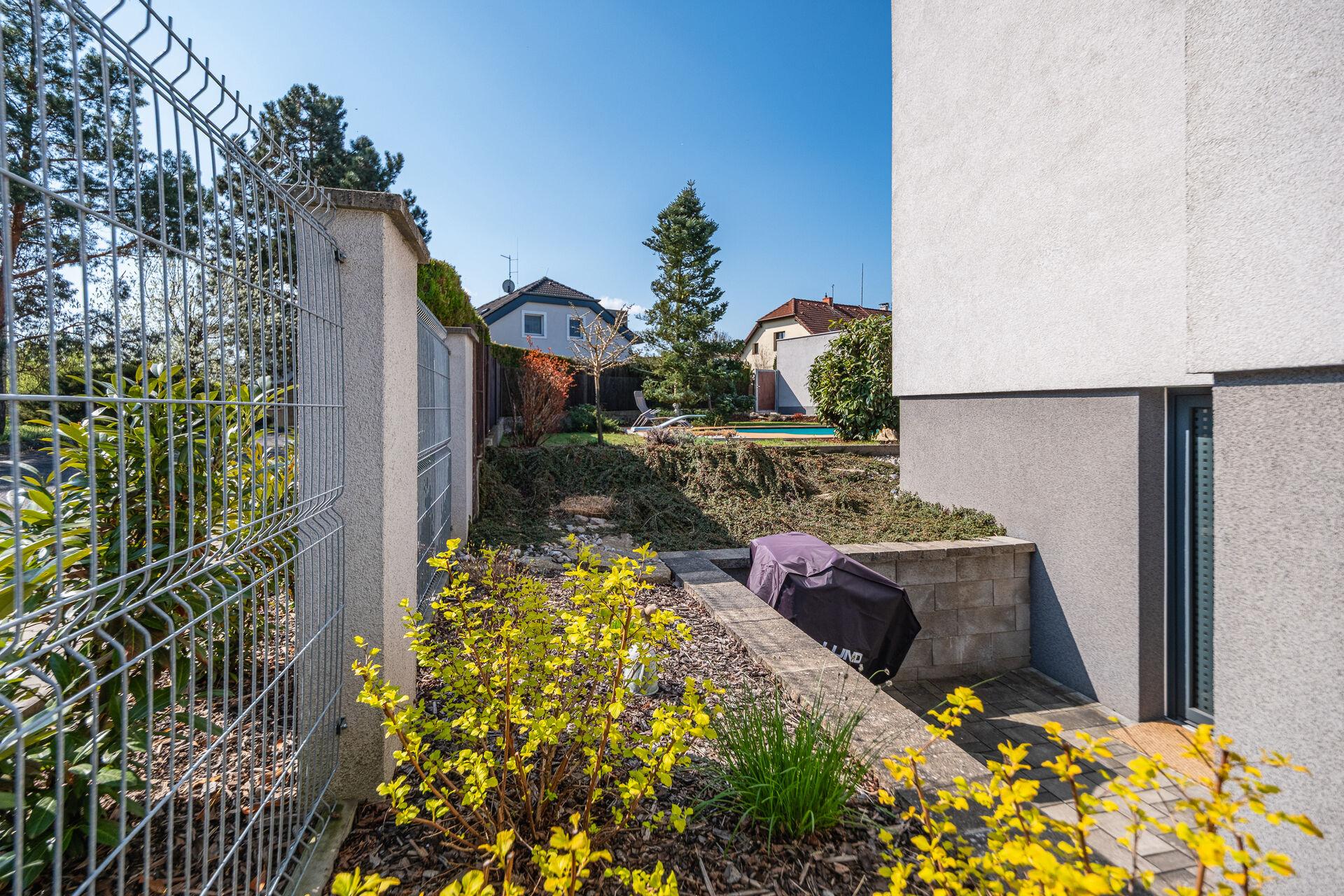 Celková užitná plocha domu činí 244 m², pozemek má 827 m² a je kompletně oplocen.