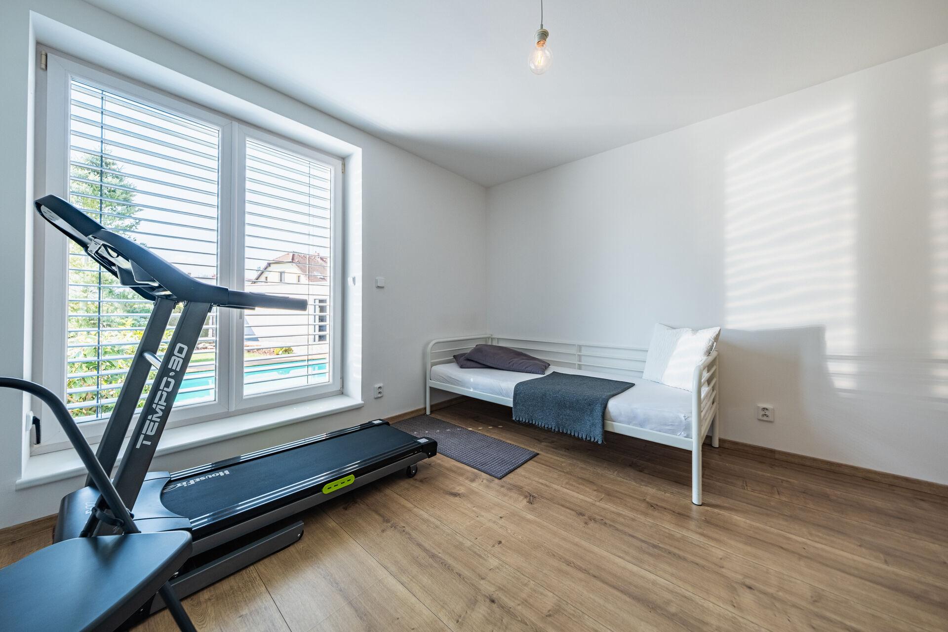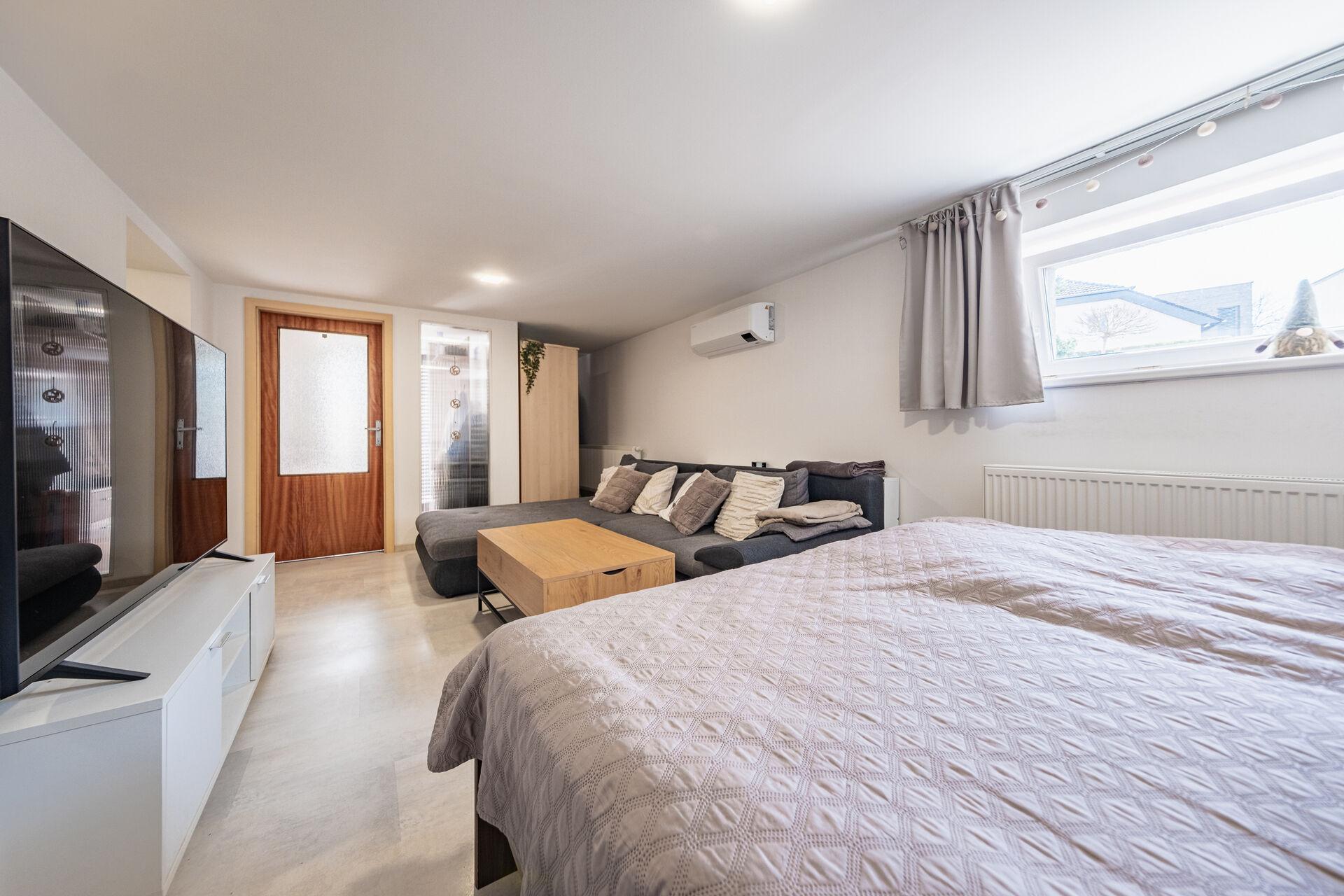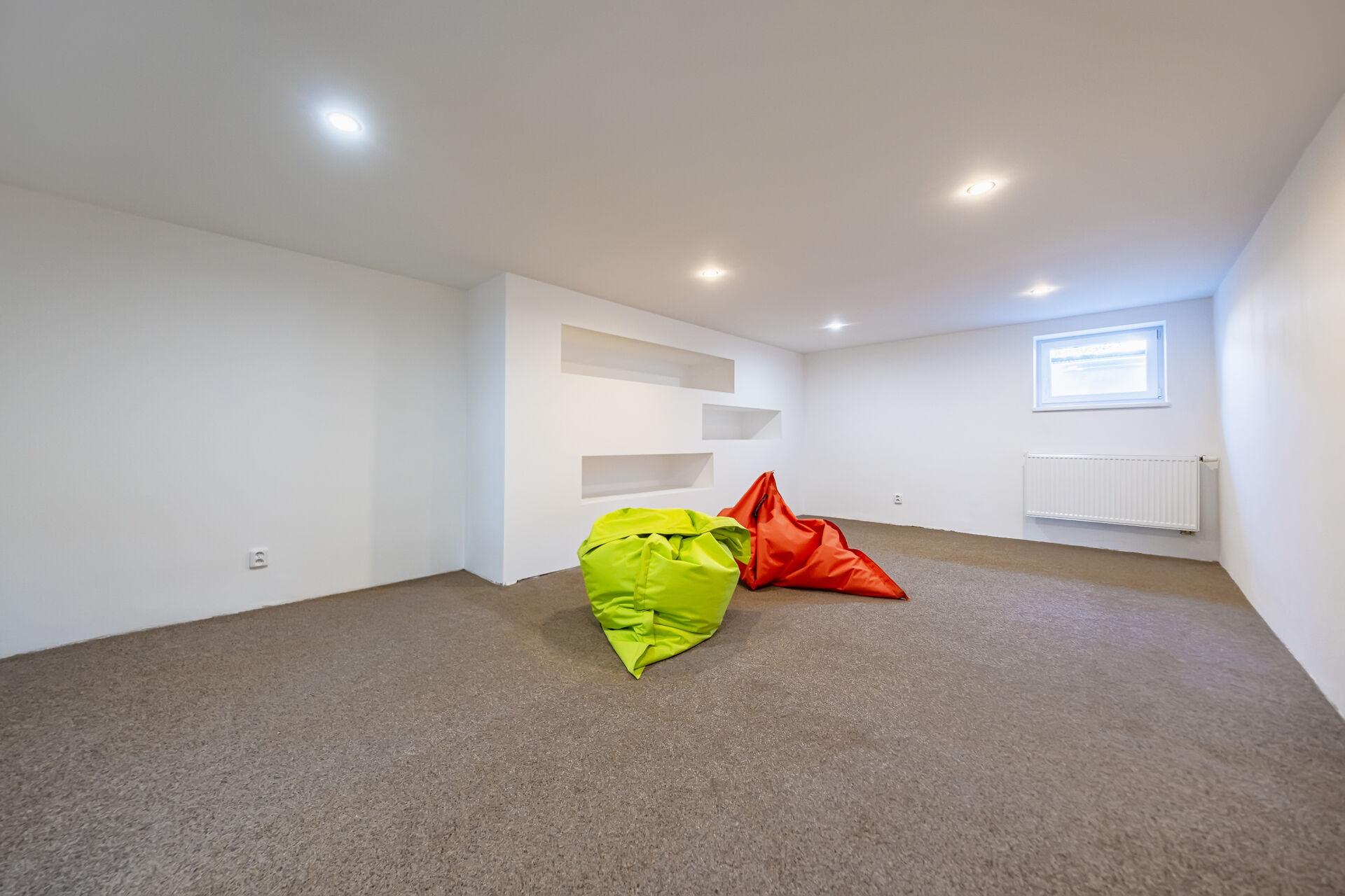 – v suterénu je samostatná jednotka 2+kk s jídelním prostorem a navazujícími místnostmi, které mohou sloužit jako pracovna, herna, wellness zóna nebo prostor pro vaše koníčky (výměra prostoru celkem 121,2m²).