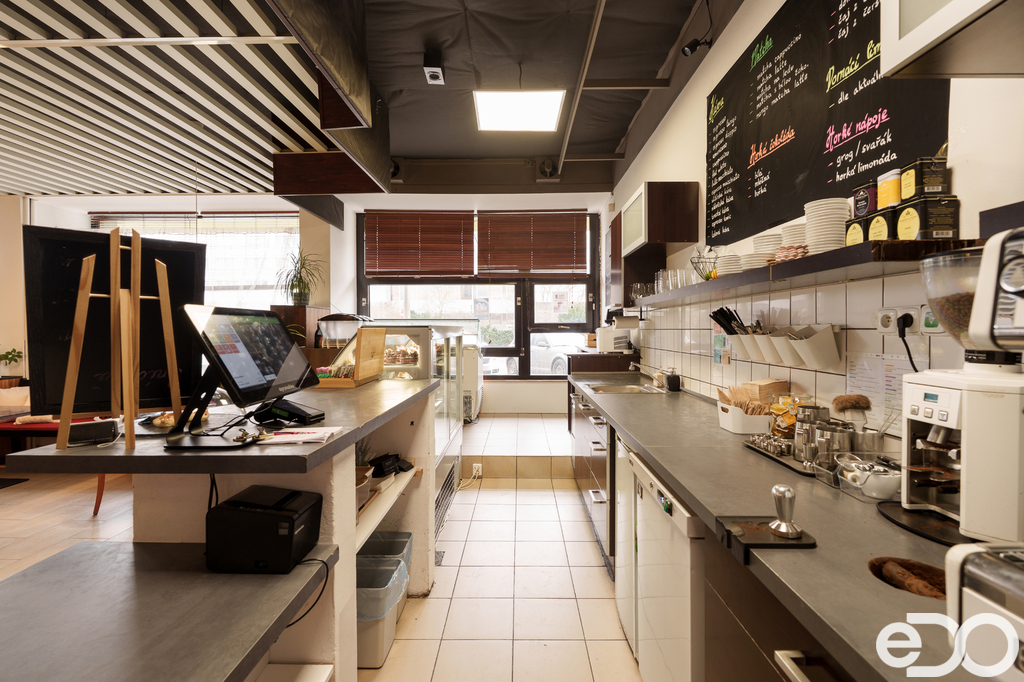 Velkou výhodou jsou dvě samostatné kuchyně – jedna na sladkou a druhá na slanou výrobu. Ideální řešení pro cukrárnu, kavárnu nebo třeba menší bistro koncept.