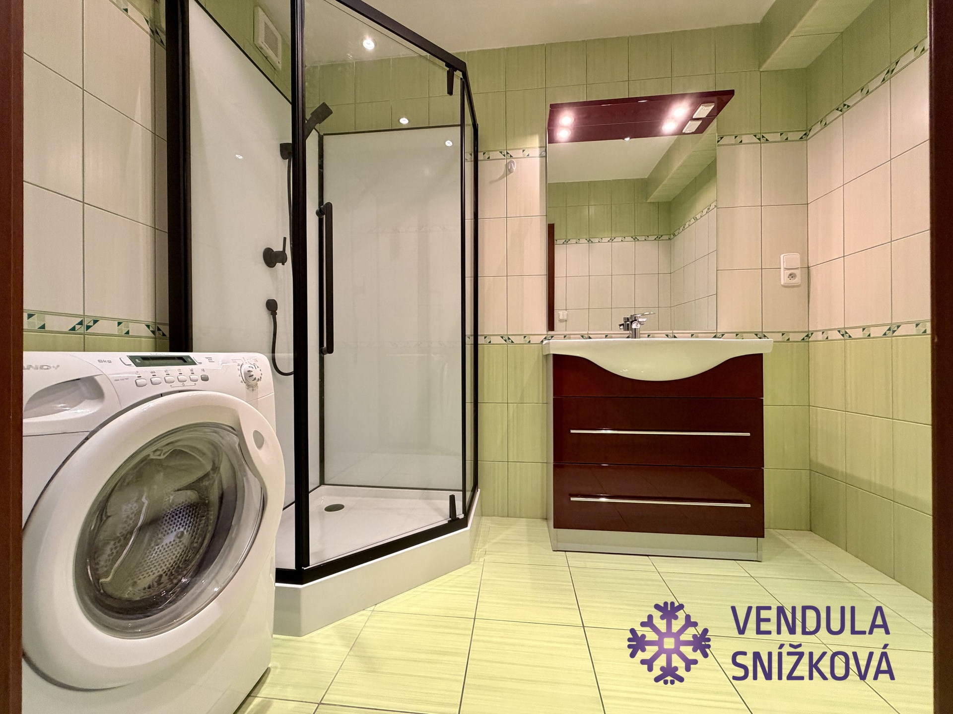 V chodbě je praktická vestavěná skříň. V koupělně nový sprchový kout a pračka, zároveň je zde dostatek prostoru pro případné umístění sušičky. Toaleta samostatně. K bytu náleží sklepní kóje.