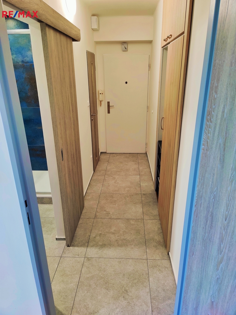 Vstupní chodba, kde se nachází praktický odkládací prostor na bundy a botník. Koupelna- která je vybavena sprchovým koutem a samostatné WC. Obývacím pokojem – který je prostorný a světlý, dále kuchyní, ta zahrnuje úplně novou kuchyňskou linku a samostatný pokojem, ideální jako ložnice nebo dětský pokoj, ze kterého se vchází na balkon , ideální místo pro ranní kávu.