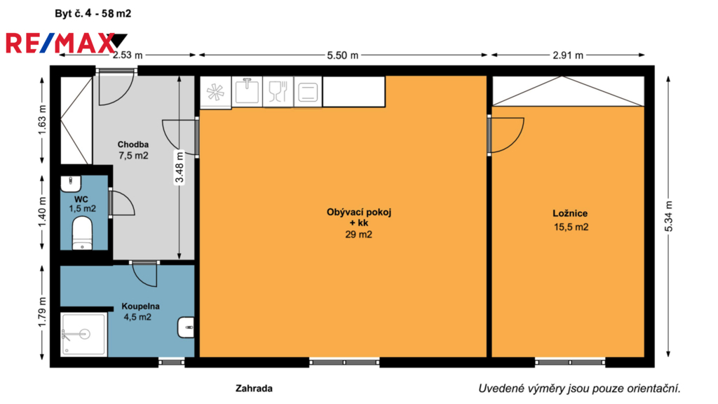 | Dispozice/podlahová plocha: | 2+kk/58 m² |