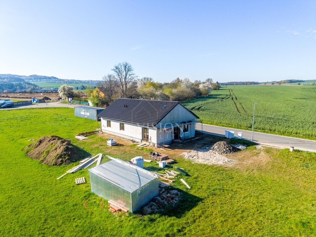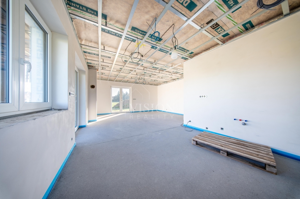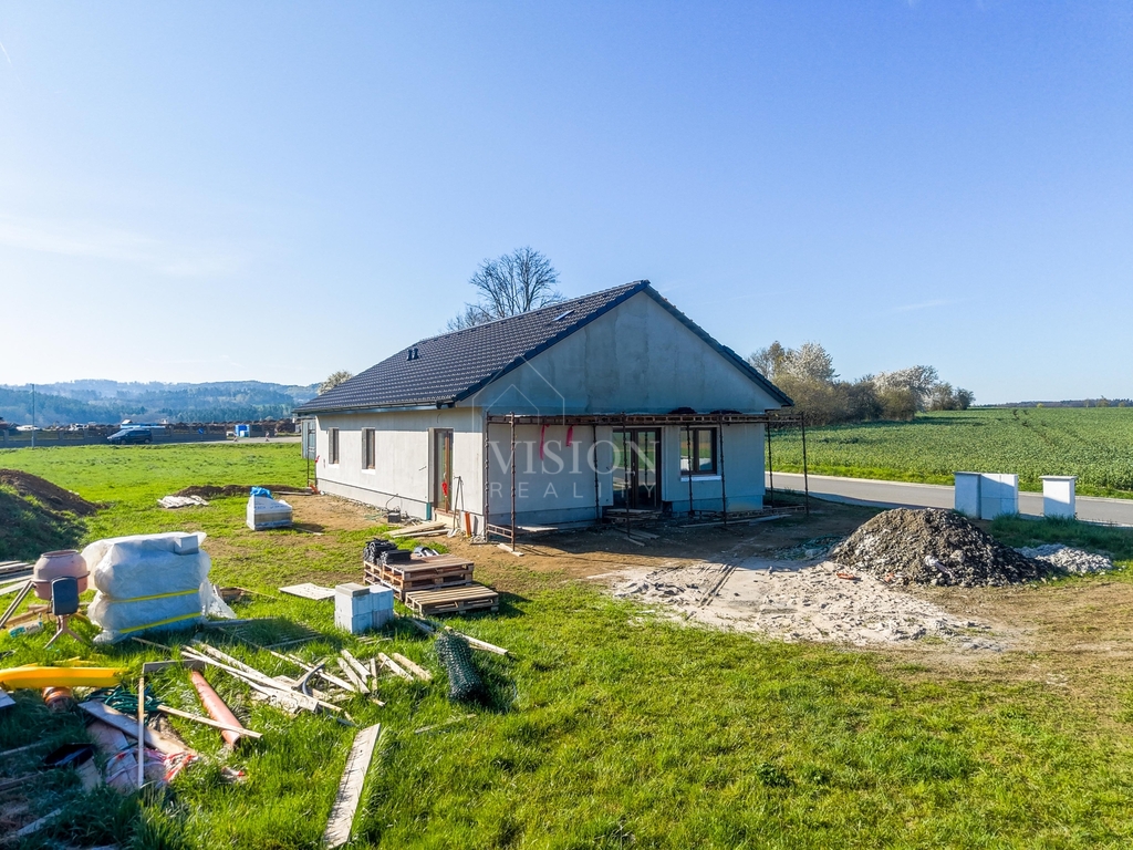 Aktuální fotografie zachycují průběh výstavby, výsledkem ale bude plně dokončená novostavba včetně finálních povrchů. Kupujete hotový domov, ne hrubou stavbu.