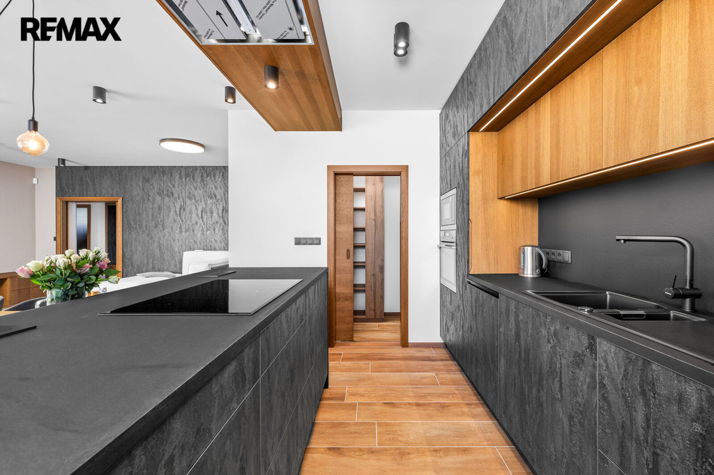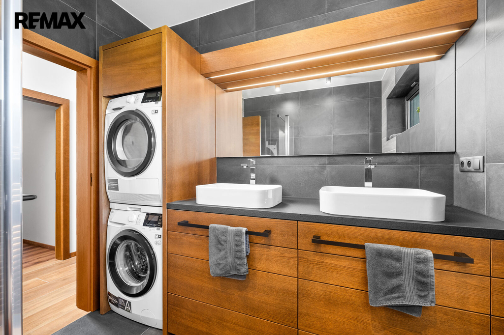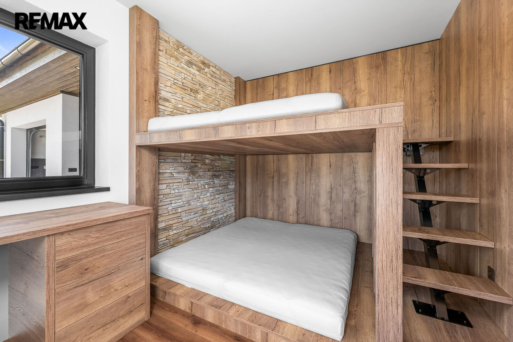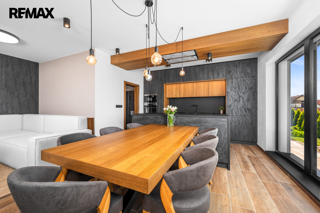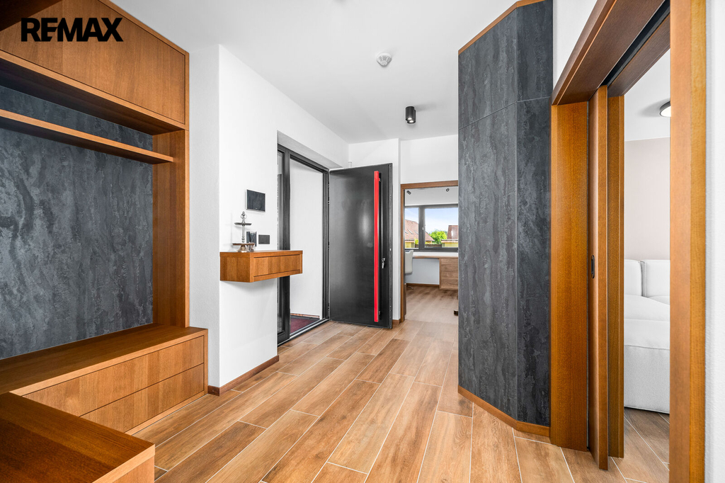 Nemovitost se prodává včetně nadstandardního, velice kvalitního vybavení: kuchyňská linka se spotřebiči, na míru zhotovený dřevěný nábytek (vestavné šatní skříně v chodbě, úložný systém ve spíži a šatně, koupelnový nábytek, předsíňová stěna, patrová postel vč. stolu a skříně v pokoji, skříně v garáži aj.). V domě zůstane i další vybavení, které je vidět na fotografiích včetně osvětlení.