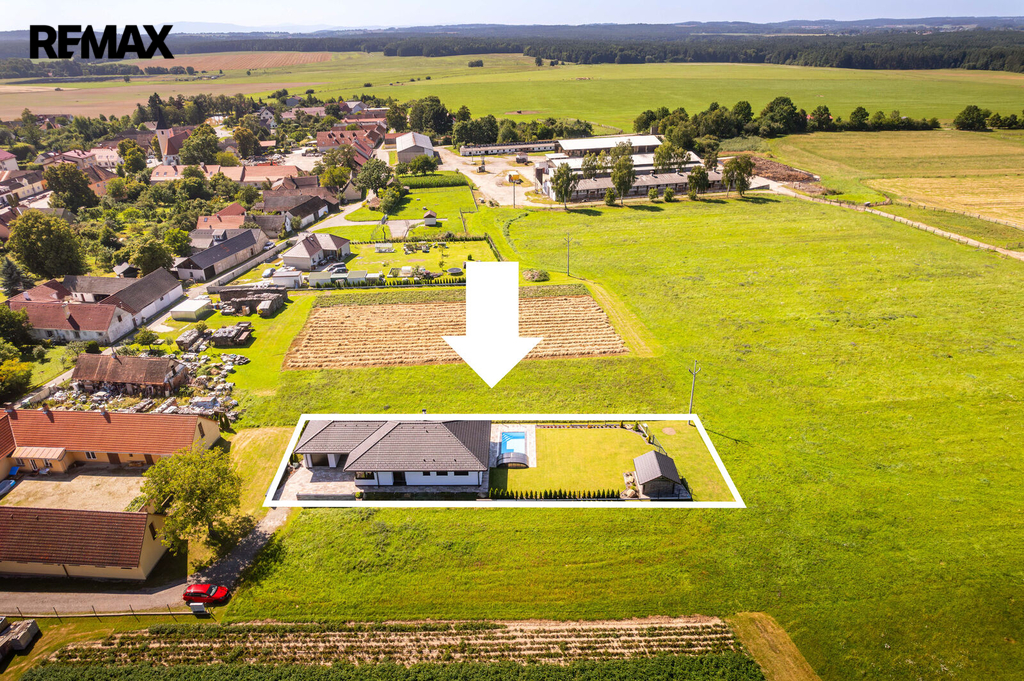 Mladošovice u Borovan – novostavba RD s garáží, bazénem a pozemkem 912 m2