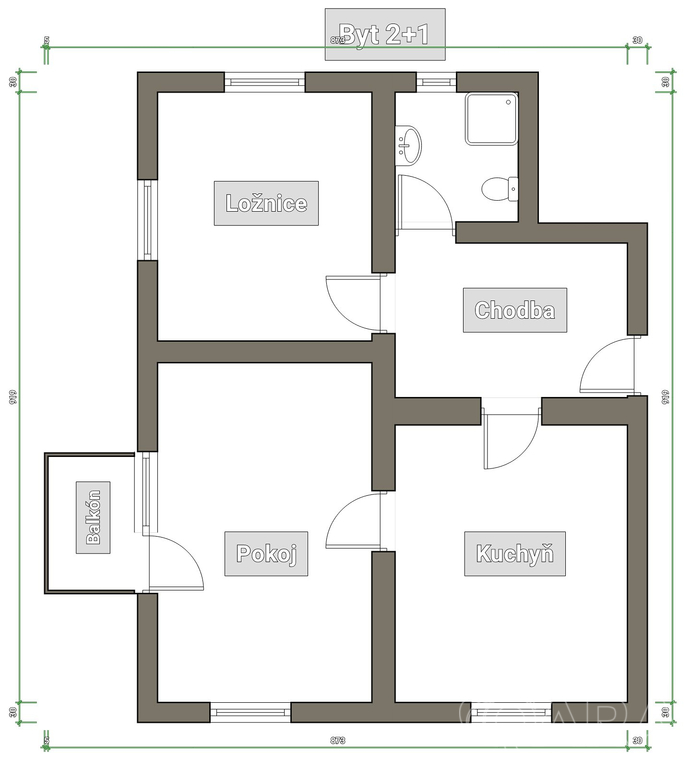 - Dispozice bytu: 2+1