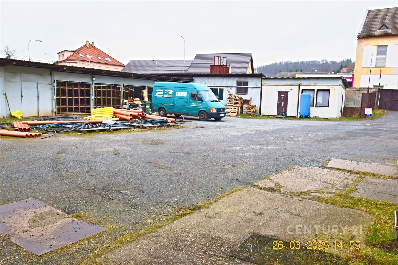Objekt se nachází na ulici Pražská, nedaleko od Masarykova náměstí, z které je vjezd do areálu velkými dvoukřídlými vraty. Na pozemku se nachází dvoupatrová budova a skladové prostory. V přízemí o velikosti 315 m2 se nachází tři samostatné dílny(sklady) s vjezdovými vraty, samostatná kotelna a menší dílna. V patře je sedm samostatných místností (kanceláře), 2x WC ,2 x sprcha a 2x kuchyňka. Celé patro má 180 m2. Do největší místnosti v patře je zavedena jeřábová kočka s možností vyzvednutí ze dvora těžších břemen do patra. V objektu jsou zavedeny všechny sítě, elektřina 400 V, voda, kanalizace a i plyn. V současné době je objekt vytápěn olejem, ale je možnost převést vytápění na plynové. Na rozlehlém dvoře jsou tři krytá stání a další skladové prostory. Celková plocha pozemku je 1484 m2. Objekt se pronajímá ve stavu, v jakém nyní je. Domluva s majitelem na případných úpravách je možná.