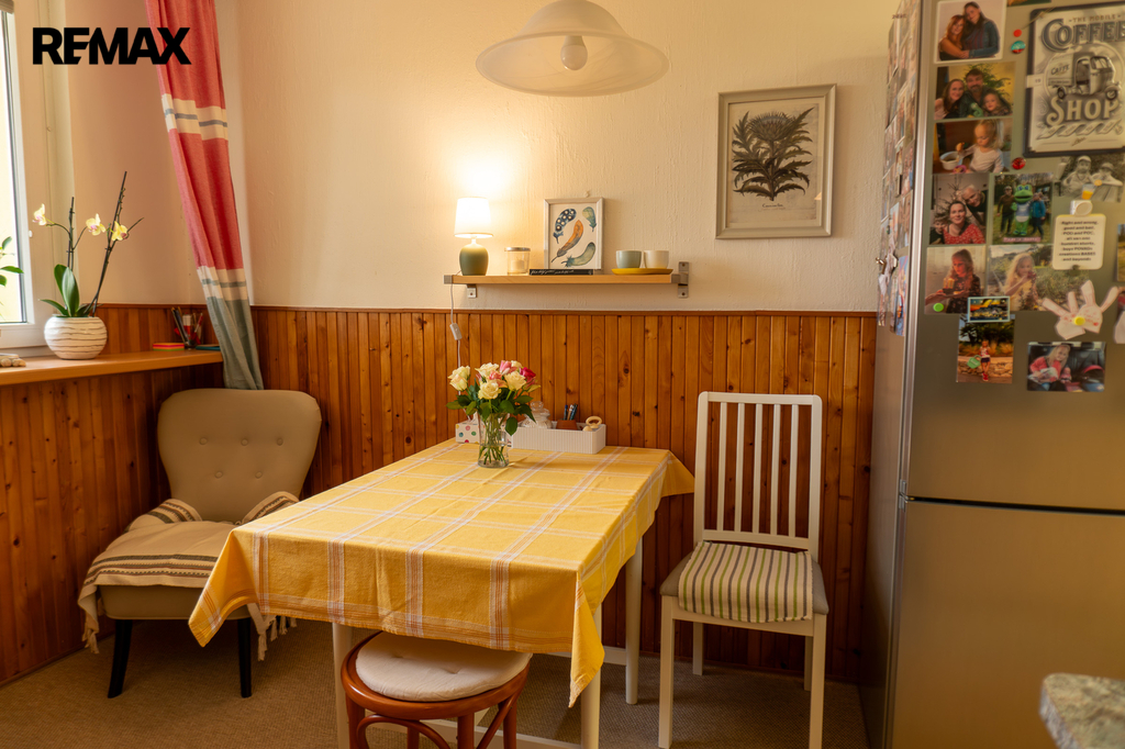 Dispozice bytu zahrnuje předsíň, oddělené WC, koupelnu, obývací pokoj, a dvě ložnice, z nichž jedna může sloužit jako dětský pokoj nebo pracovna. Obývací pokoj je prostorný a má vstup na balkón o velikosti 6 m², což poskytuje možnost vychutnat si příjemné chvíle pod širým nebem. Kuchyň s jídelním koutem se nachází na dosah od obývacího pokoje, což podtrhuje příjemnou atmosféru interiéru.