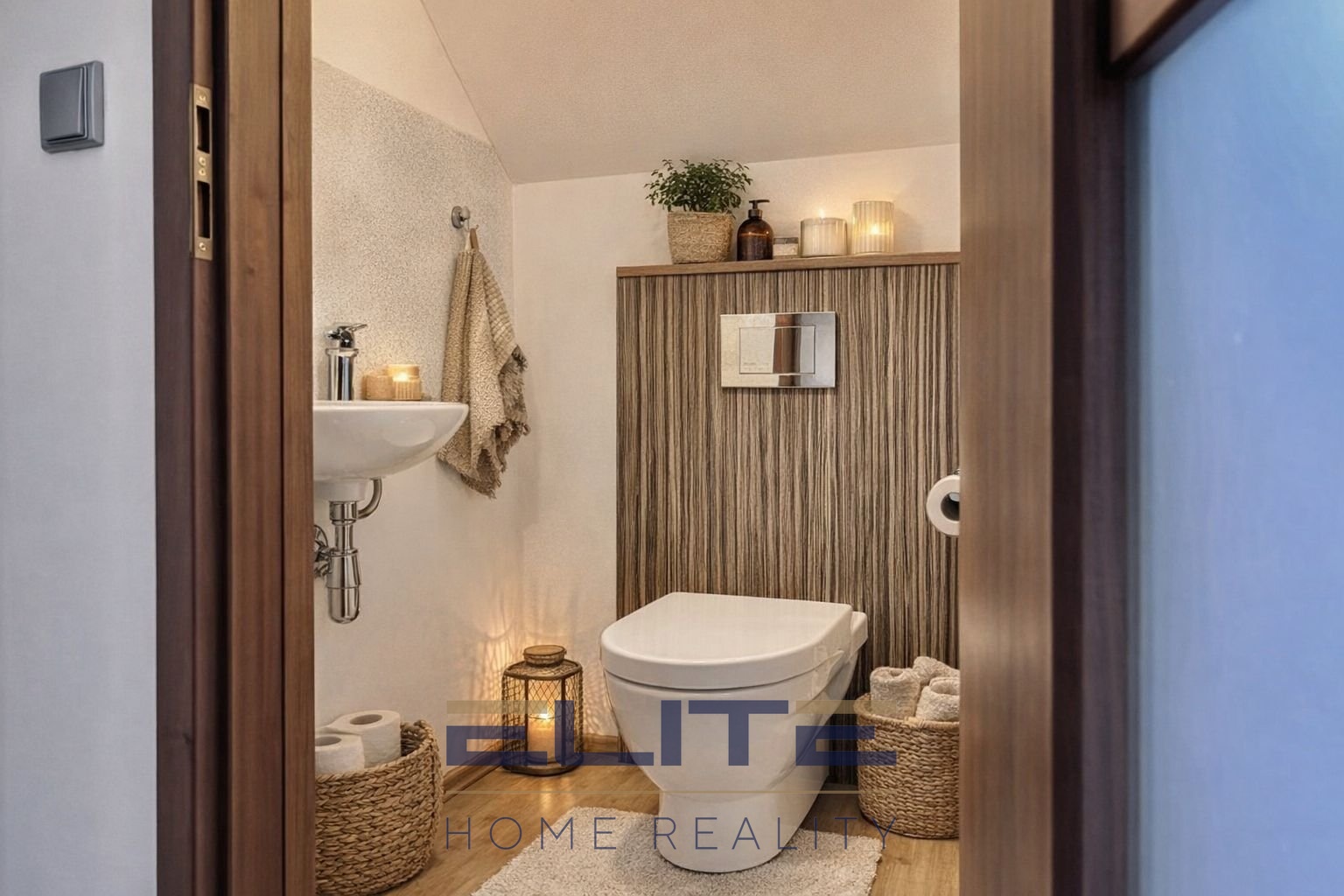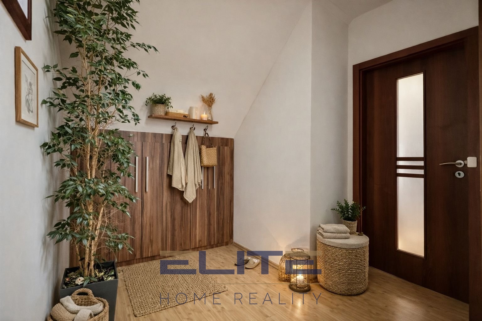 Dispozice mezonetové části je velmi flexibilní a nabízí několik variant využití dle potřeb budoucích majitelů – lze ji ponechat jako dva dětské pokoje, případně jednoduchou úpravou vytvořit jednu ložnici a samostatnou šatnu či pracovnu. K inzerátu jsou zpracovány také vizualizace znázorňující jak variantu dvou pokojíků, tak variantu jedné ložnice, aby si zájemci mohli lépe představit možnosti uspořádání tohoto prostoru.