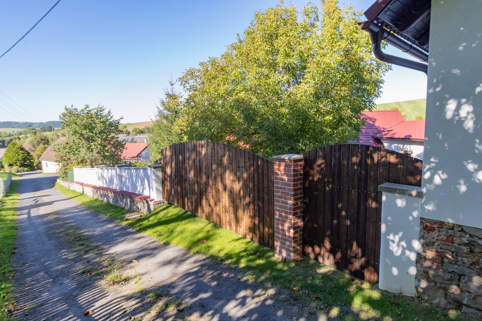 Dispoziční řešení: 4+1 o zast. ploše domu cca 180 m2, s celkovou obytnou pl. cca 100m2, o celkové ploše pozemku 1.155m2. Vnitřní dispozice: vstupní předsíň s chodbou a funkční udírnou, kuchyně s funkční pecí, el. sporákem s vestavěnými spotřebiči v nové kuchyňské lince, prostorný obývací pokoj + další tři pokoje; koupelna se sprchovým koutem, topným žebříkem, WC. Na dům navazují dva prostory s klenbovými stropy a komínem, vhodné k vytvoření příjemného společenského posezení, či vinárny. Prostory lze sloučit. Dřevěné masivní posezení je k dispozici. Součástí nemovitosti je velmi prostorná stodola (140 m2) s vlastním sklepem. Do stodoly je přívedena voda a odpady, na podlaze je leštěný beton. Dále pak nádherný zemní sklípek (10m2). Pozemek je obestavěn zdí v kombinaci osázenými stromky, které zajišťují naprosté soukromí nemovitosti se sluncem po celý den.