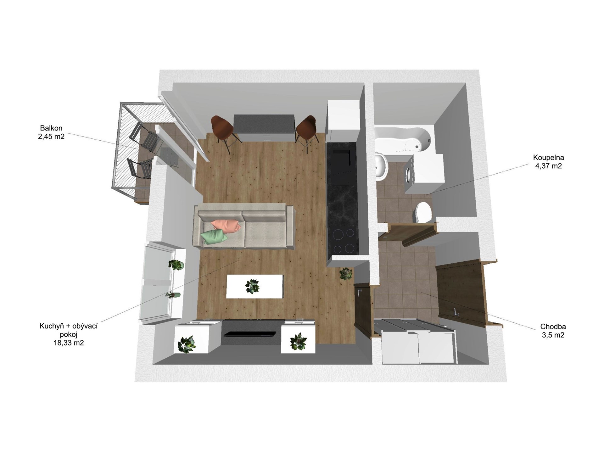 | Dispozice/podlahová plocha: | 1+kk/26 m² |