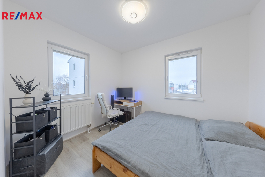 V bytě jsou plastová okna s trojsklem a vícekomorovým systémem, který zaručuje vynikající tepelnou izolaci a výborné protihlukové vlastnosti.