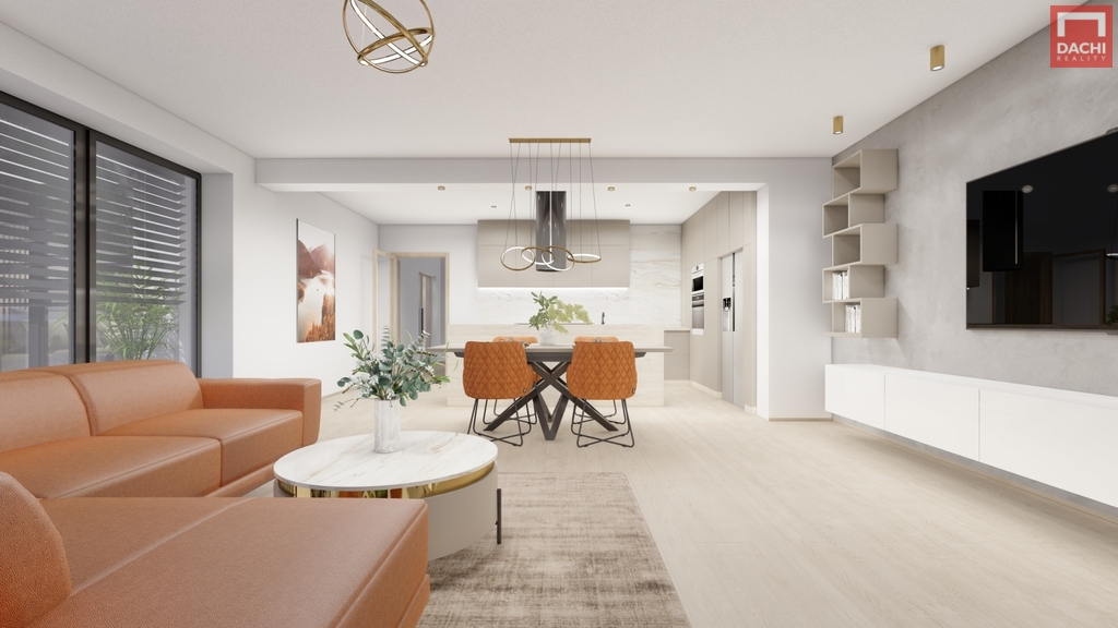 Součástí standardního vybavení jsou venkovní žaluzie, úsporné tepelné čerpadlo vzduch–voda, upravená zahrada i okolí před domem, příprava na instalaci solární elektrárny, prostorná garáž i venkovní parkovací stání. Dům je připraven k dokončení tak, aby si budoucí majitel mohl vybrat z více barevných variant podlah a obkladů podle svého vkusu. Standardní provedení je již zahrnuto v ceně a vyznačuje se vysokou kvalitou použitých materiálů i zařizovacích prvků, takže nový domov bude nejen funkční, ale i nadčasově elegantní.