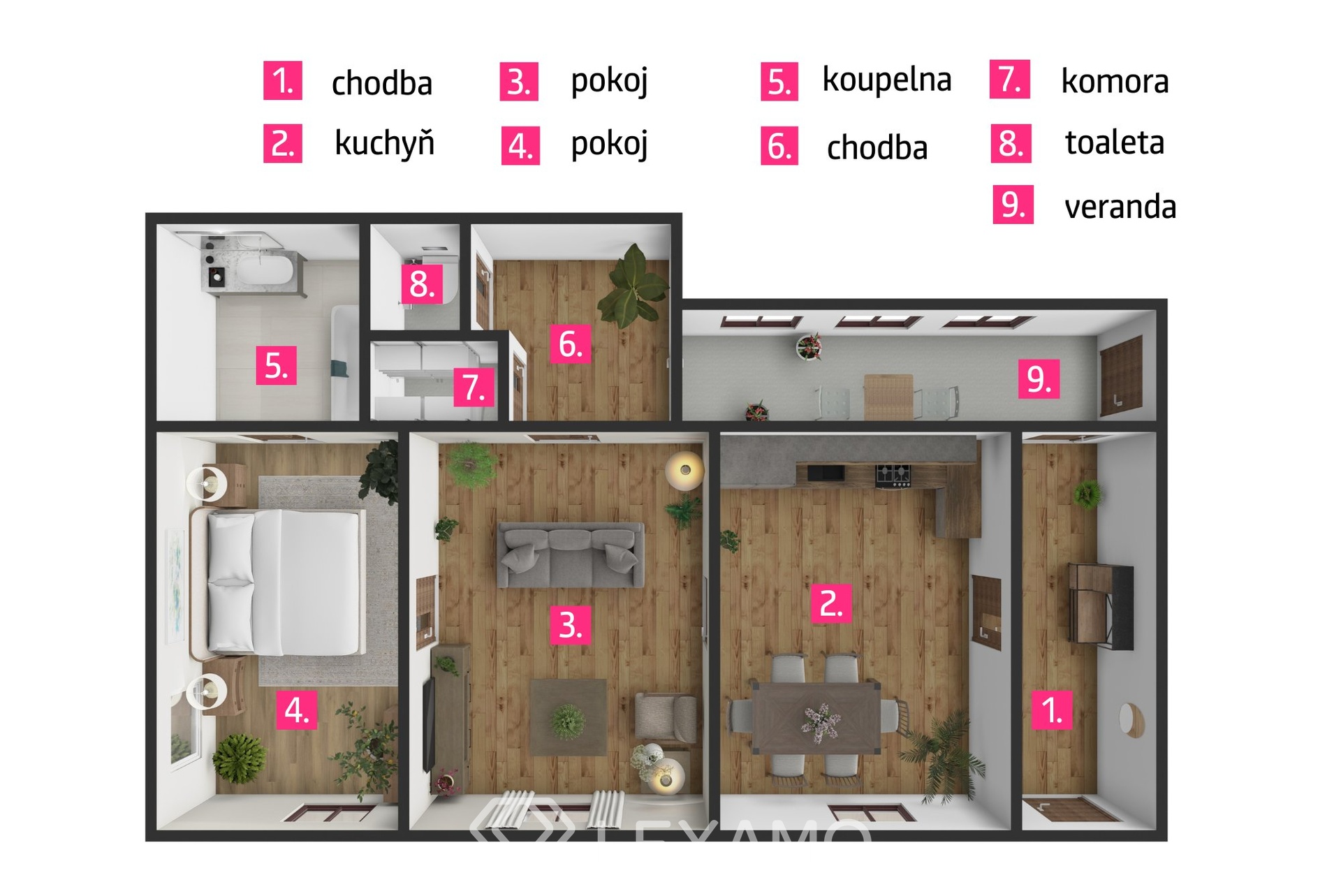 Dům je dispozičně řešen jako přízemní a nabízí kuchyni, dva obytné pokoje, koupelnu, samostatnou toaletu, komoru, prosklenou verandu a prostornou vstupní chodbu. Nemovitost je v původním stavu a je určena ke kompletní rekonstrukci, což dává novému majiteli jedinečnou příležitost vytvořit si bydlení přesně podle vlastních představ a potřeb.