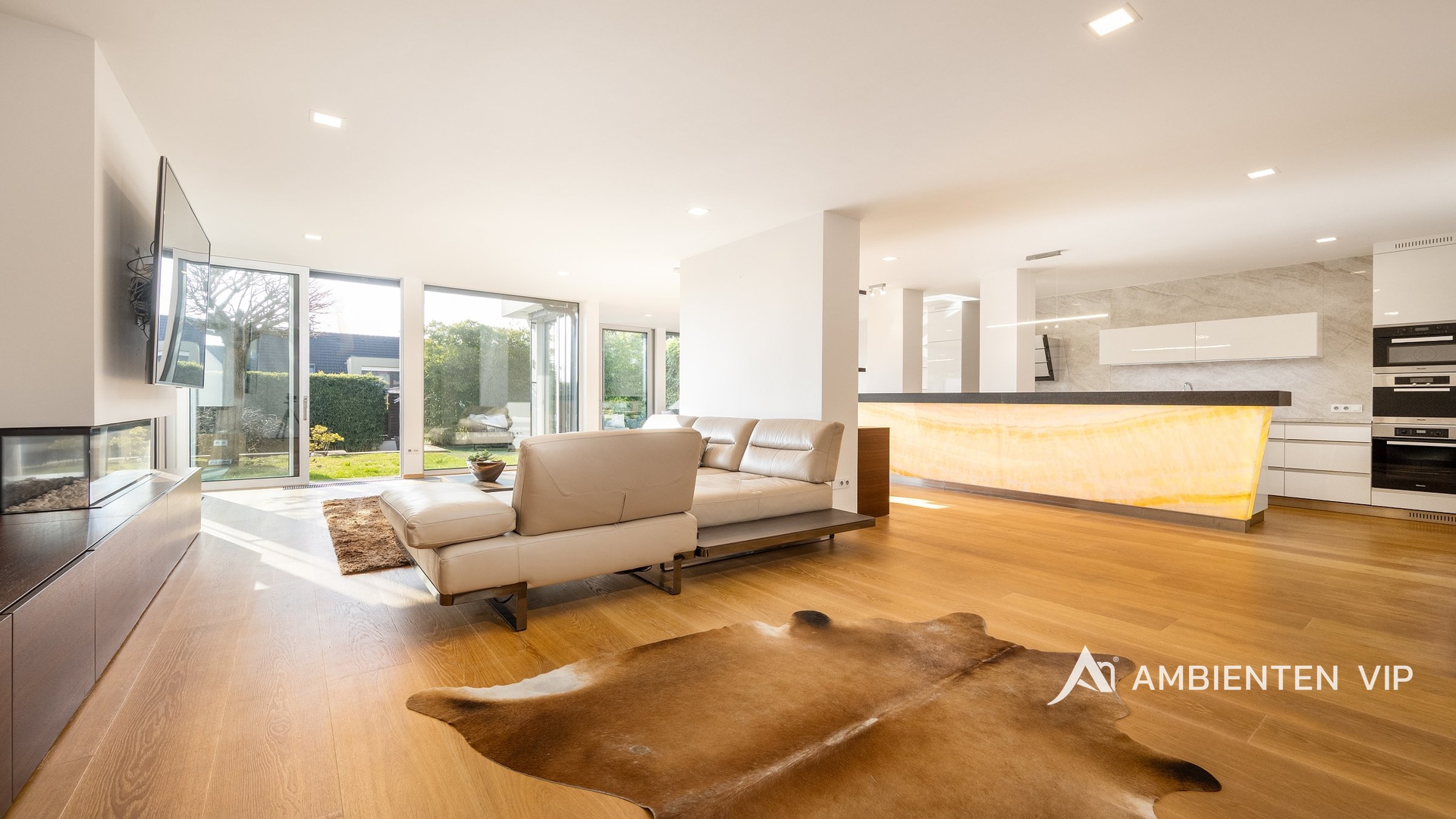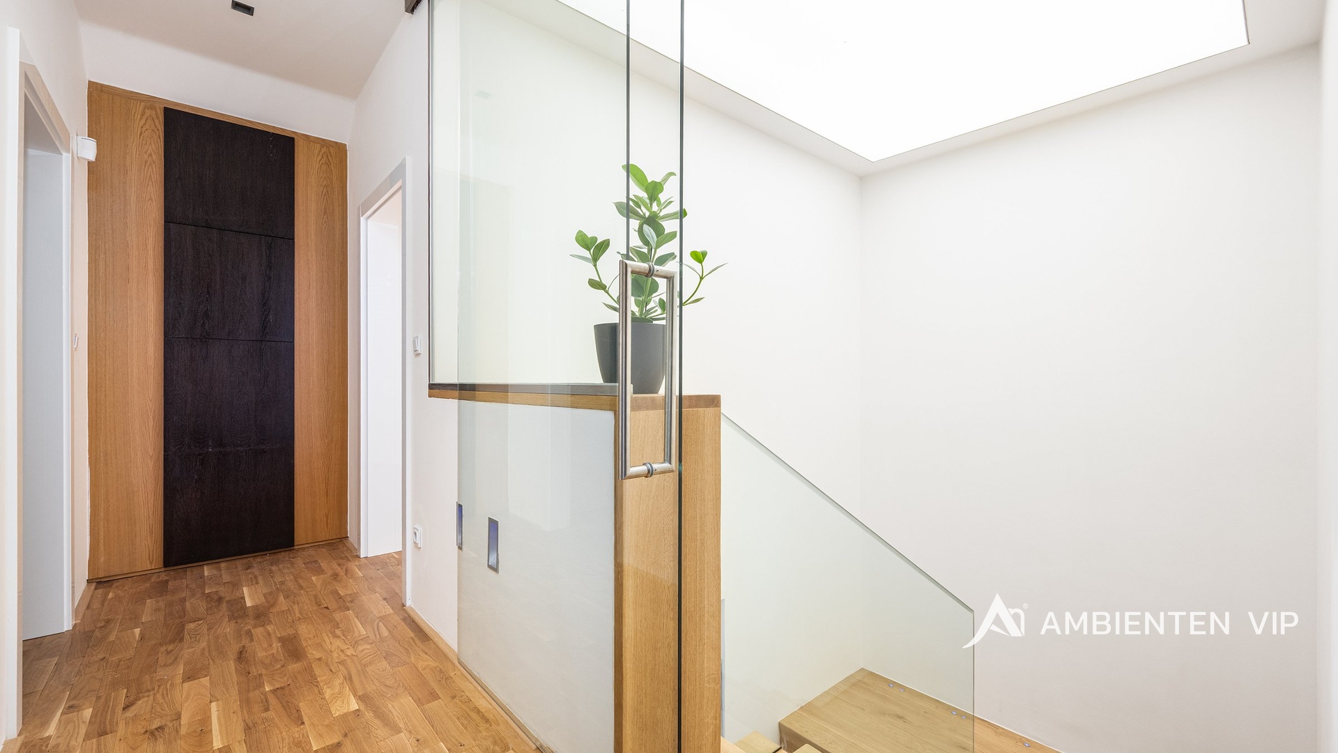 AMBIENTEN VIP exkluzivně nabízí prodej luxusní vily o dispozici 5+kk s garáží pro 2 vozy a parkováním pro další čtyři vozy za branou na vlastním pozemku. Vila vám dále nabízí nádhernou zahradu s bazénem, vinným sklepem, zahradním domem s venkovní kuchyní, saunou a ochlazovací bazénkem. Nemovitost se nachází v obci Moravany u Brna. Celková užitná plocha domu činí 382 m2 a celková plocha pozemku 849 m2. Tato vila představuje ideální volbu pro klienty hledající nadstandardní rodinné bydlení s důrazem na soukromí, kvalitní provedení a promyšlené detaily. Vila prošla kompletní rekonstrukcí před pár lety a je ve výborném technickém stavu, bez nutnosti dalších investic okamžitě k nastěhování. Svým provedením, prostorem a úrovní vybavení splňuje požadavky i velmi náročných klientů. V přízemí domu se nachází vstupní hala, která je vybavena vestavnými skříněmi na míru. Ze vstupní haly vstupujete do otevřené dispozice obývacího prostoru s nadstandardně vybavenou kuchyní a jídelním koutem. Kuchyně je kompletně vybavená moderními spotřebiči značky Miele a profesionálním kuchyňským vybavením. Dominantou kuchyně je jedinečný podsvícený onyxový prvek a kuchyňská linka obložená z kvarcitu Taj Mahal. Obývací část s jídelnou zaujme velkorysými francouzskými okny orientovanými do zahrady, díky nimž je celý prostor krásně prosvětlený. Výrazným prvkem prostoru je kvalitní dubová podlaha od rakouského výrobce, designový krb na dálkové ovládání a luxusní sedačka značky Natuzzi, které společně vytvářejí příjemnou atmosféru pro každodenní bydlení i společenská setkání. V přízemí se dále nachází koupelna a samostatná odpočinková místnost, kterou lze využít například jako relaxační zónu, pracovnu či pokoj pro hosty. První patro disponuje třemi samostatnými ložnicemi, ke kterým náleží samostatné šatny, které nabízí velké množství úložných prostor. Ze dvou ložnic se nachází přímý vstup na terasu. Dále se zde nachází prostorná koupelna vybavená vanou, sprchovým koutem, dvěma umyvadly, toaletou a bidetem. Na zahradě se nachází krytý venkovní bazén s ohřevem o rozměru 8 x 4 m. Okolí bazénu je z pískovce Teakwood. Voda v bazénu je celoročně vyhřívána až na 32 °C. Dále se zde nachází zahradní dům, který je podsklepený s vinným sklepem. V zahradním domě je venkovní kuchyně s příjemným posezením a dále sauna s ochlazovacím bazénkem, sprchou a toaletou. Nemovitost nabízí maximální soukromí díky pečlivě řešené zahradě a zároveň nadstandardní vybavení. Vila je zabezpečená systémem Jablotron, vybavena kamerovým systémem a inteligentním systémem řízení domácnosti. Samozřejmostí je dálkové ovládání vstupní brány i garážových vrat. Komfort při příjezdu zajišťuje vyhřívaný příjezd i vstup do domu a k dispozici je prostorná dvojgaráž. Soukromí zahrady podtrhuje promyšlená kompozice vzrostlé zeleně, kde nechybí katalpy, magnolie, červený javor ani celoročně zelené bambusy, které vytvářejí příjemnou atmosféru. Zahrada je vybavena automatickým závlahovým systém s dešťovým senzorem. Součástí prodeje jsou také designová svítidla, skleněné jednovrstvé podsvícené zábradlí a moderní klimatizační systém značky Sinclair (5 jednotek), který umožňuje chlazení i přitápění. V celém domě jsou trojskla přispívající k vysokému energetickému komfortu bydlení vč. venkovních žaluzií. Vytápění domu je zajištěno přes plynový kotel. Stavba je provedena z cihelného zdiva POROTHERM se zateplením polystyrenem o tloušťce 10 cm. Fasádní systém je od rakouské značky Baumit a střešní krytina je značky Bramac. Současný majitel zároveň nabízí možnost předání kompletního servisu spojeného s údržbou domu. Obec Moravany patří mezi vyhledávané rezidenční lokality v bezprostřední blízkosti Brna. Nabízejí kompletní občanskou vybavenost a zároveň klidné prostředí s rychlou dostupností do centra města. Do centra Brna je možné se dostat přibližně do 15 minut, nákupní centrum Futurum je vzdáleno pouhých 5 minut jízdy. Výhodou je také velmi dobré napojení na dálnice D1 a D2.