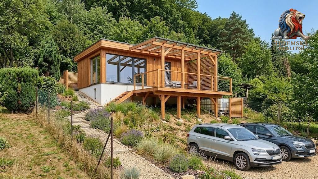 Příjezd k chatě je poměrně komfortní po takřka vodorovné zahradní městské cestě. Na pozemku v dolní části v tuto chvíli zaparkujete 2 osobní auta.