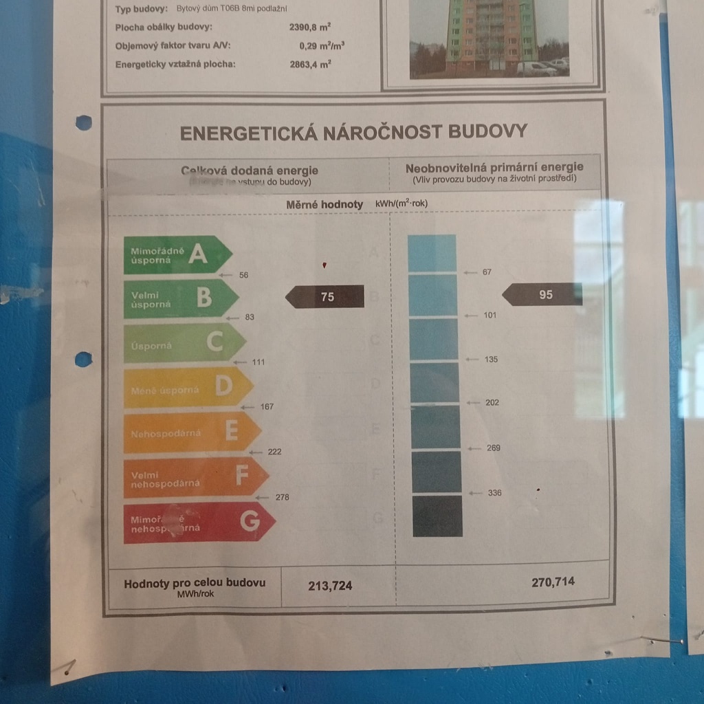 - Ukazatel energetické náročnosti budovy: 75 kWh/m²