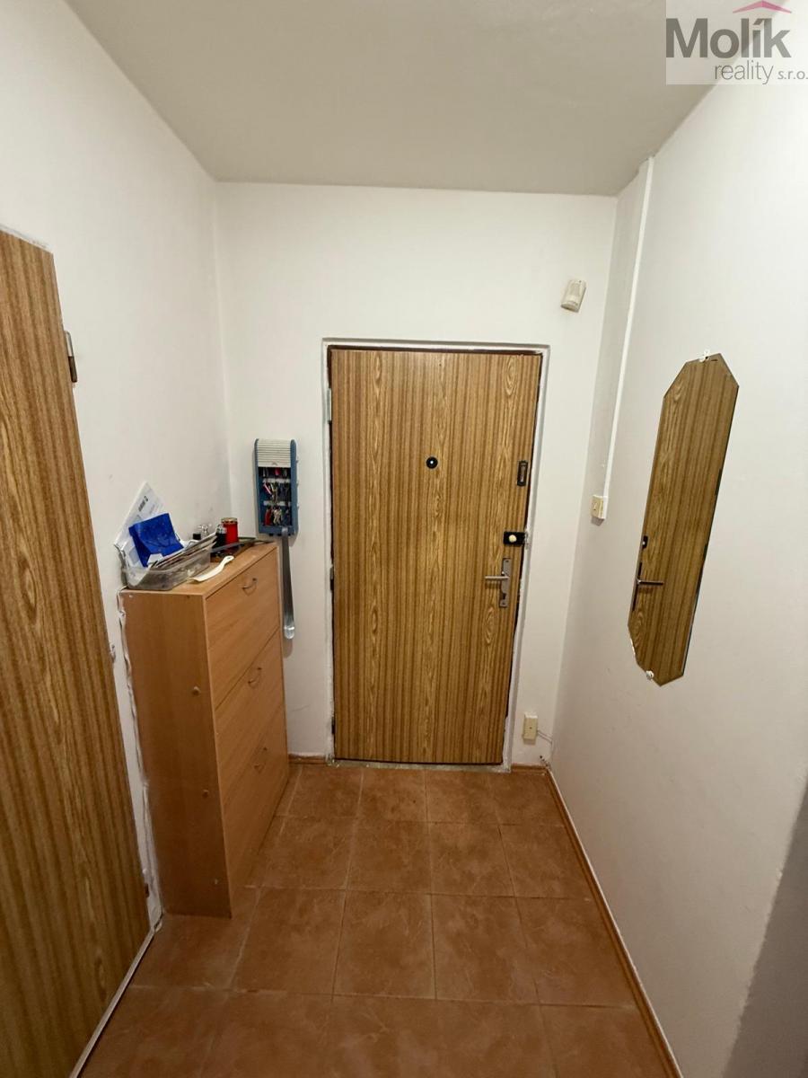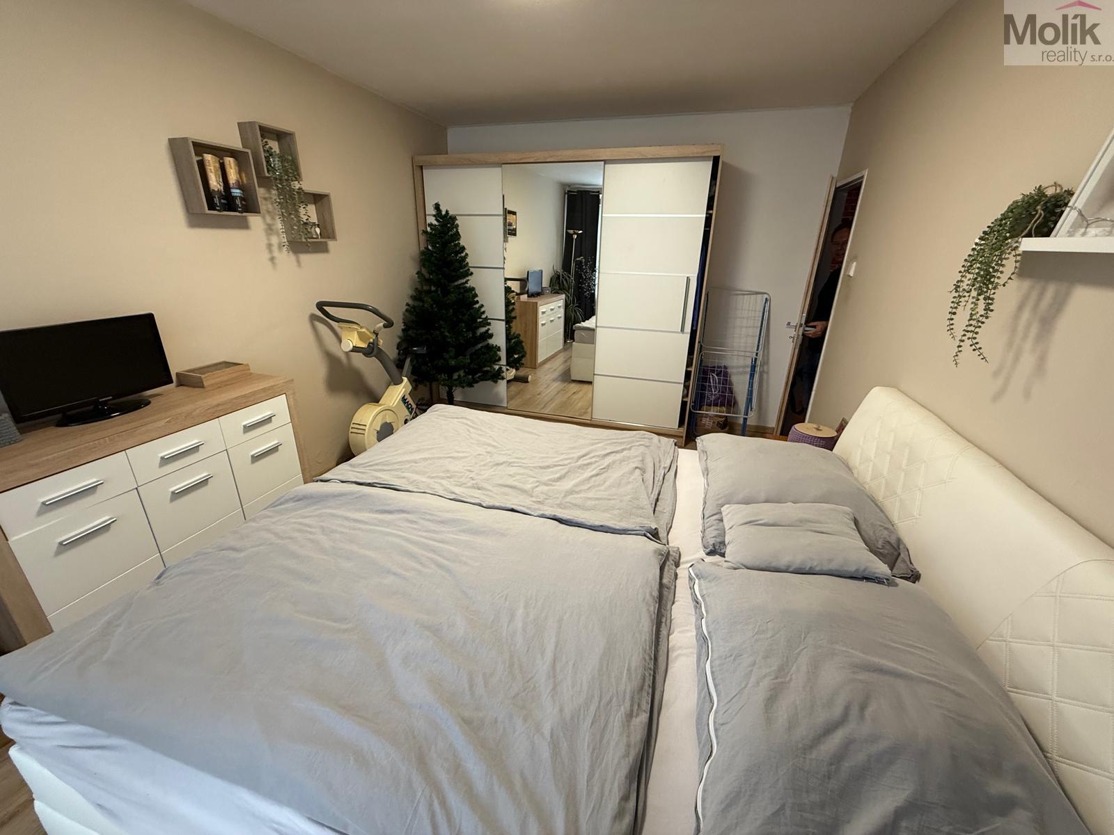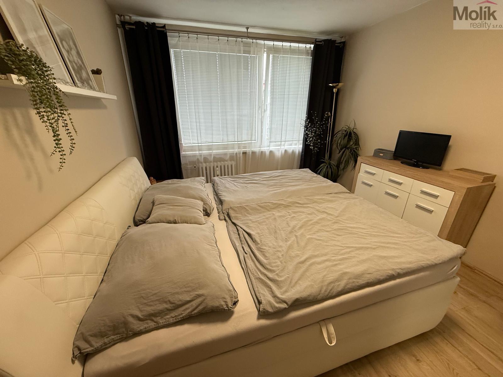 V bytě je nová vestavěná skříň a postel. Veškeré vybavení může v bytě zůstat.