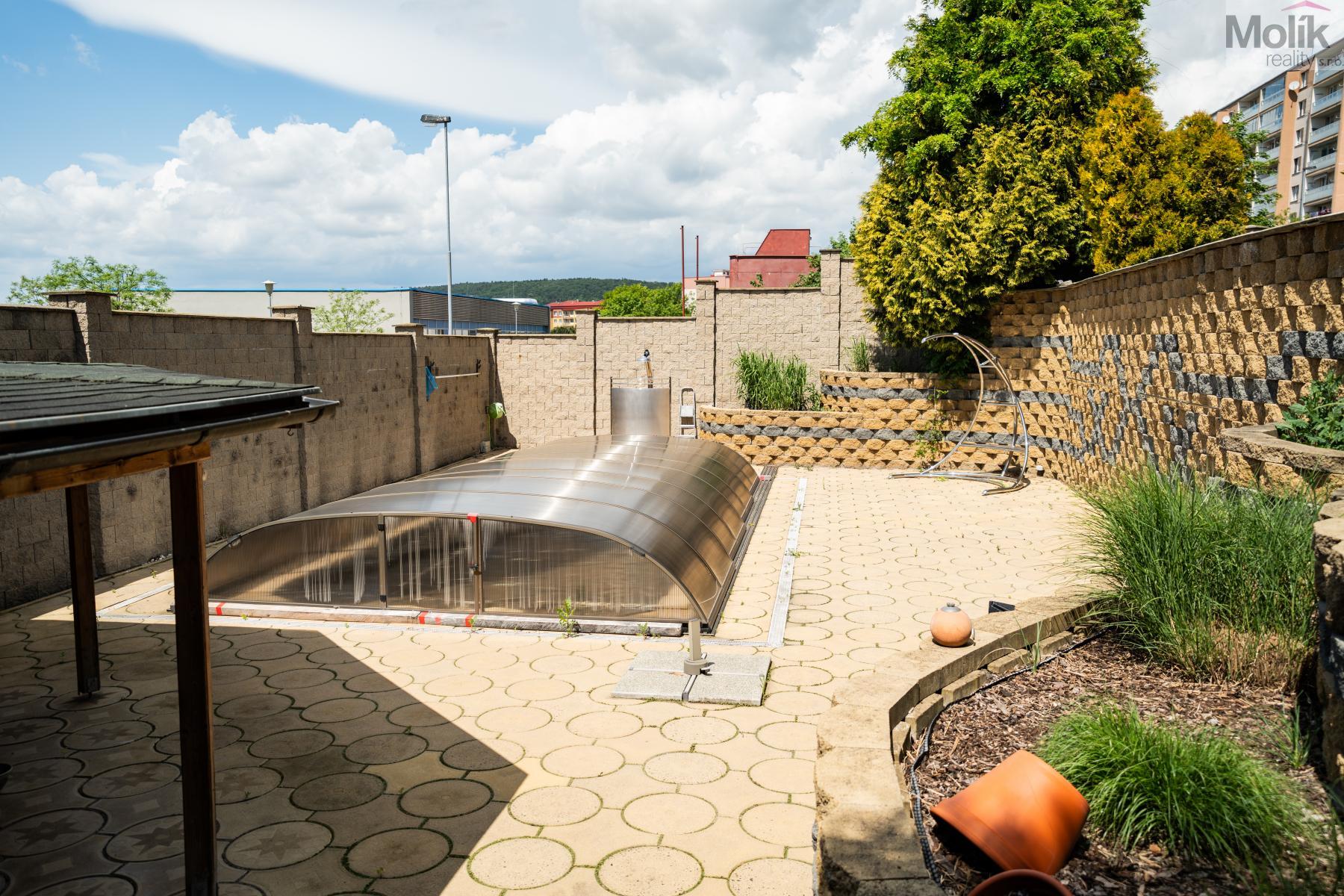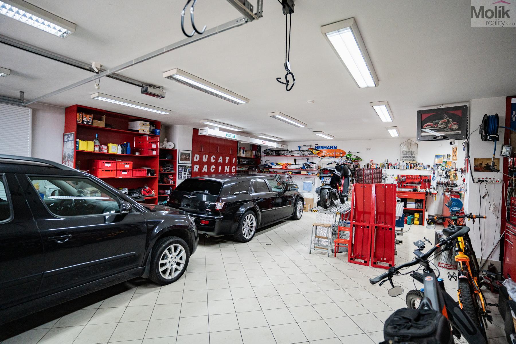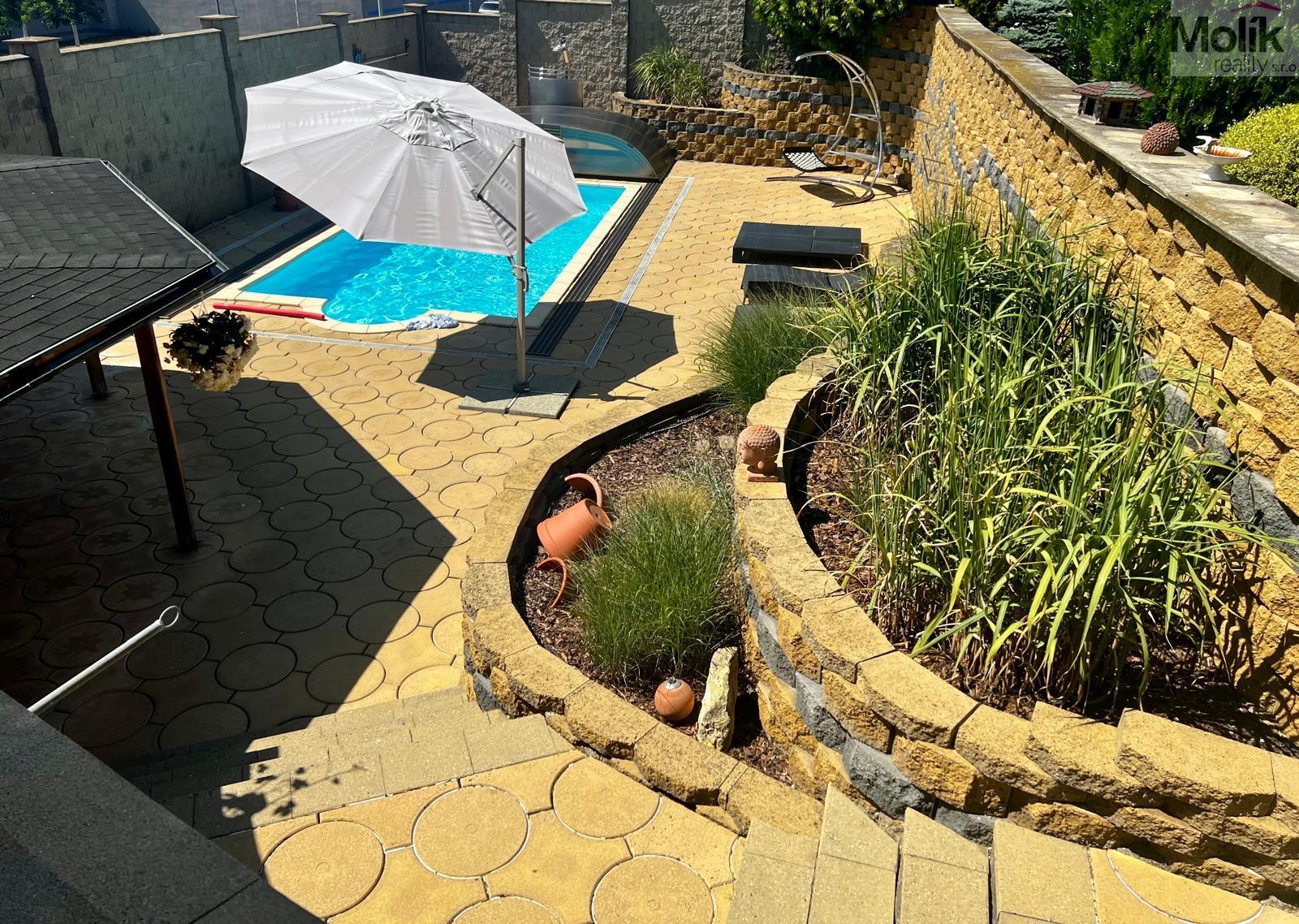 Na pozemku se nachází veliký krytý zapuštěný bazén s protiproudem a vyhříváním, dále se nachází veliká garáž pro dva automobily a upravené kontejnery pro sklad nářadí.