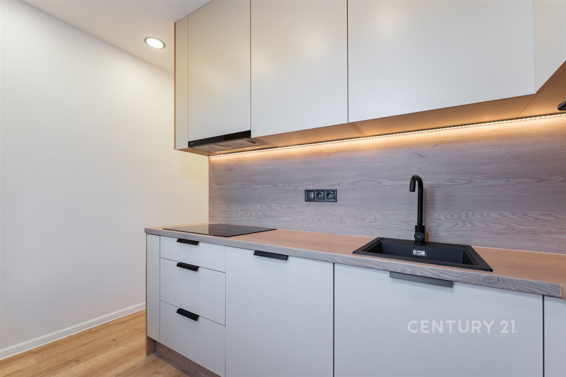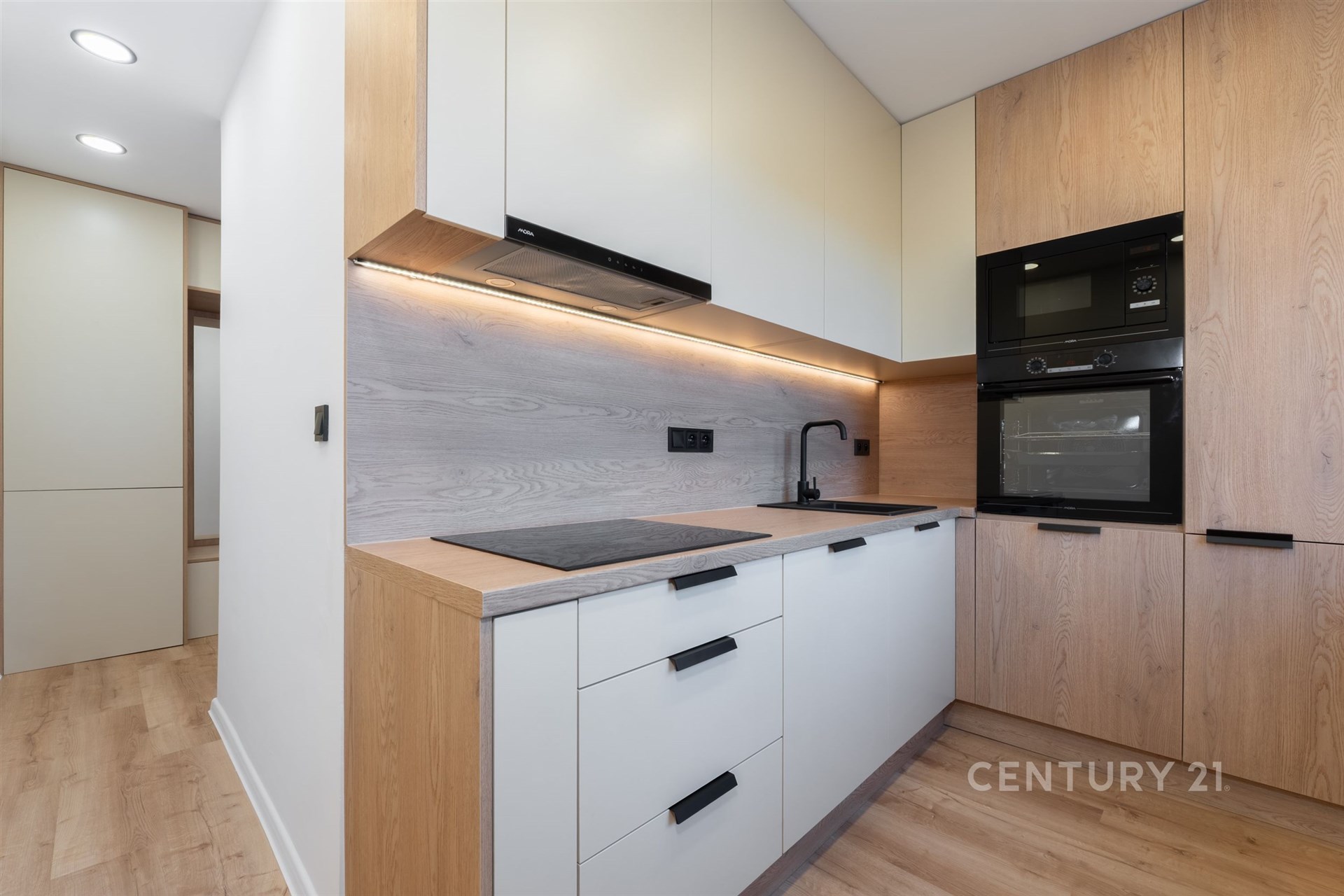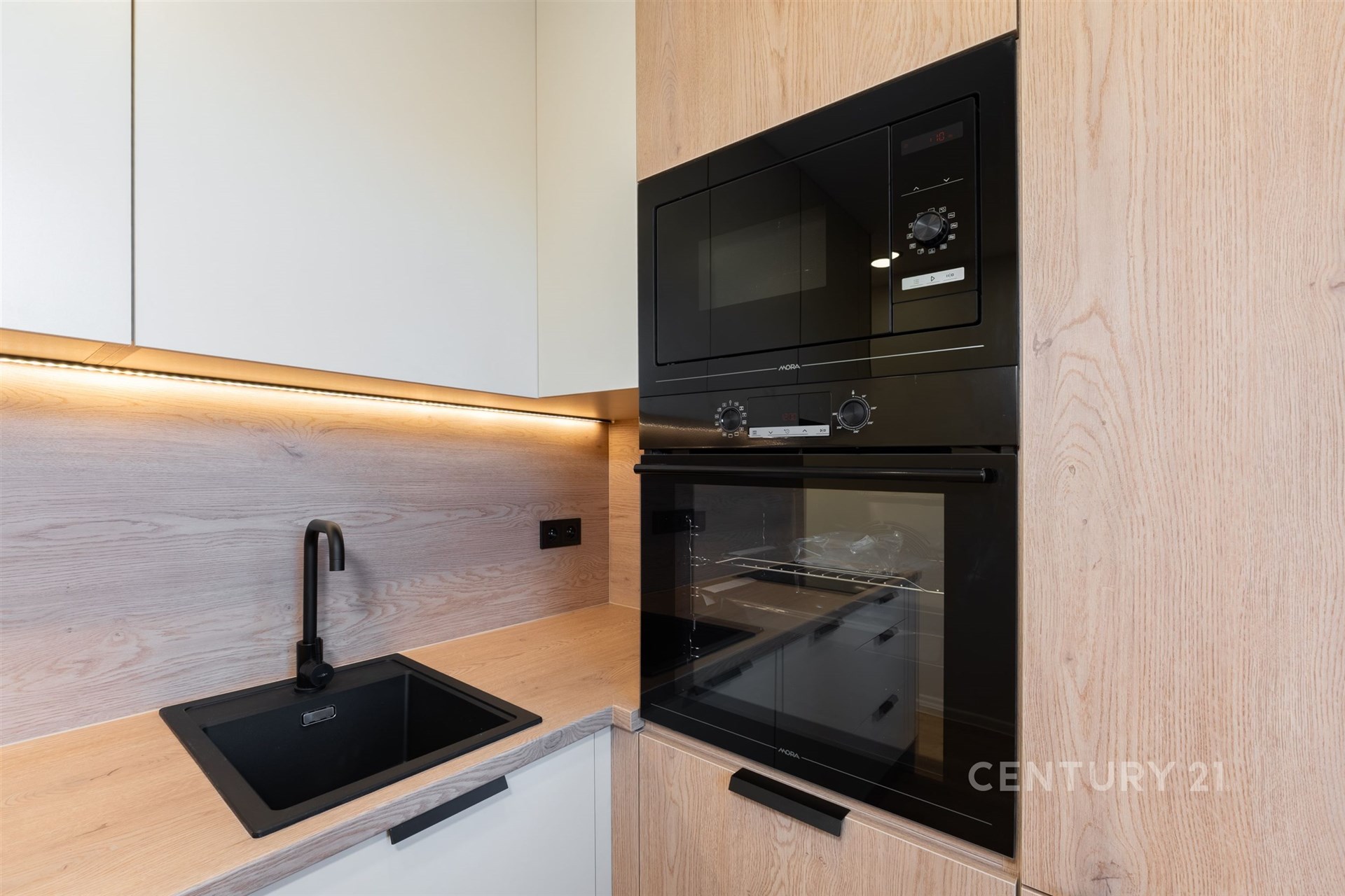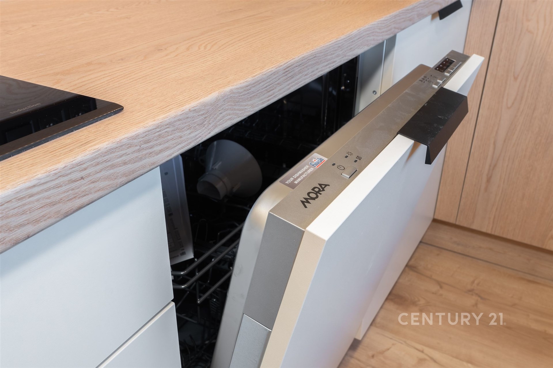 • Moderní kuchyňská linka (LED podsvícení) s vestavnými spotřebiči (lednice, myčka, elektrická trouba, sklokeramická deska, mikrovlnná trouba a digestoř)