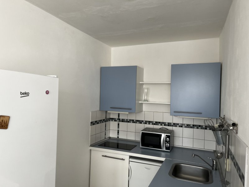 Interiér je laděn do světlých tónů, které prostor opticky zvětšují a působí vzdušným dojmem. Dominantou bytu je útulný obytný pokoj s kuchyňským koutem, kde se nachází vkusná kuchyňská linka s varnou deskou. Prostor nabízí dostatek místa jak pro každodenní bydlení, tak i pro pohodlné uspořádání nábytku.