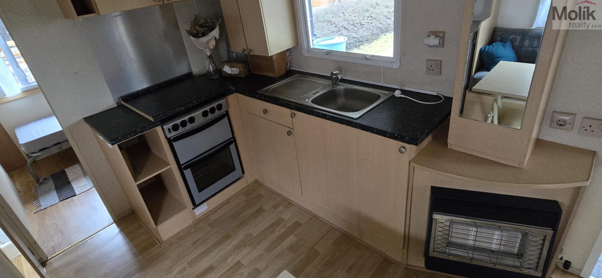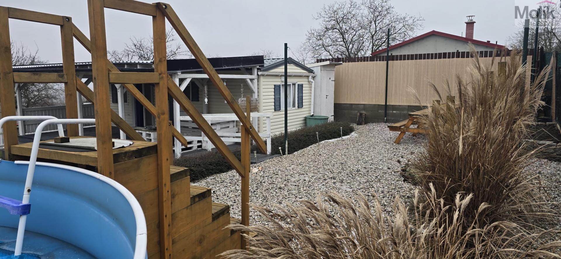 Na oploceném pozemku se nachází vkusně a moderně zařízený mobilní dům, který poskytuje plnohodnotné zázemí pro rekreaci i delší pobyt. Součástí je koupelna se sprchovým koutem a praktická kuchyňská linka do L, vybavená moderními spotřebiči. WC splachovací.