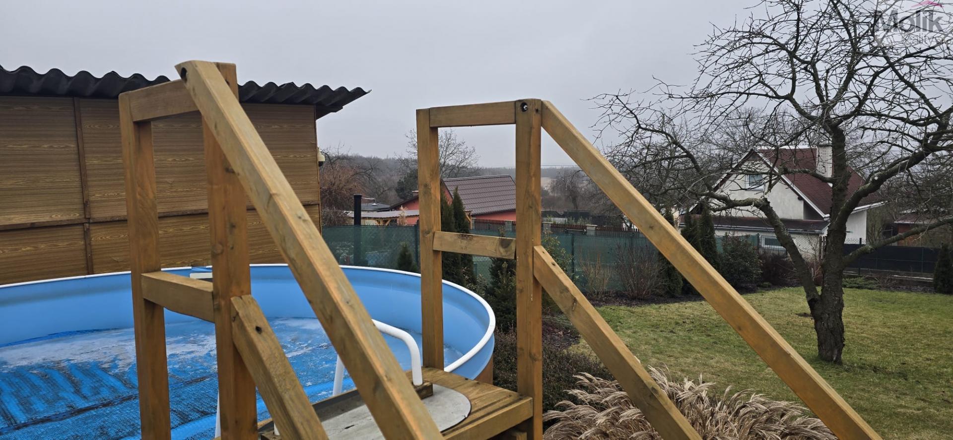 Zahrada je rovinatá, jen mírně svažitá, převážně zatravněná a velmi pečlivě udržovaná. Je osázena vzrostlými stromy a působí útulným a příjemným dojmem. K relaxu v horkých dnech můžete využít venkovní bazén. Velkou výhodou jsou tři parkovací místa přímo na vlastním pozemku.