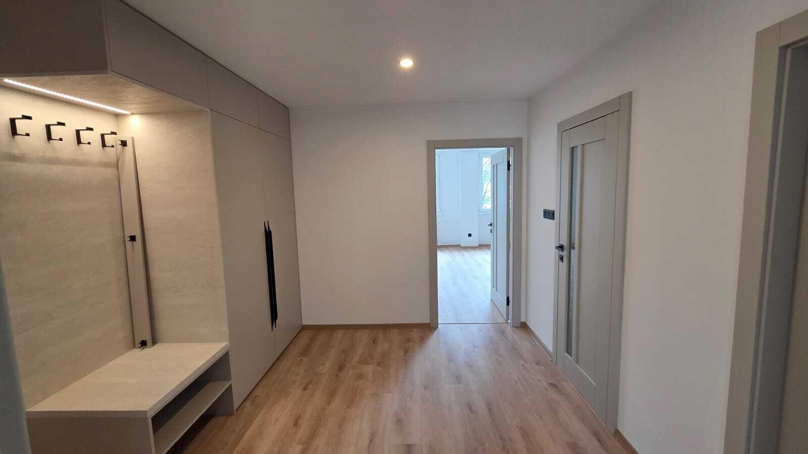 V bytě je vše nové, nové podlahy, nová koupelna, nová kuchyňská linka, nová světla, vypínače, bezfalcové dveře s obložkami. Celý interiér je pečlivě sladěný do nejmenšího detailu a zároveň každý detail je důležitý. Bezesporu největší dominantou bytu je kuchyňská linka s vestavěnými spotřebiči a vestavěná šatní skříň v chodbě. Vše bylo vyrobeno na míru pro tuto bytovou jednotku, pro Vás a Vaše příjemné bydlení.