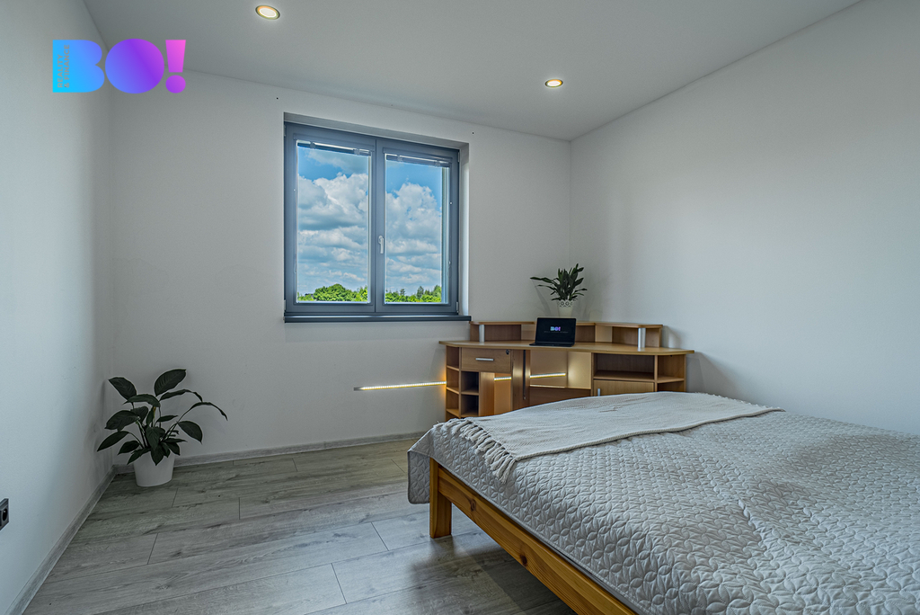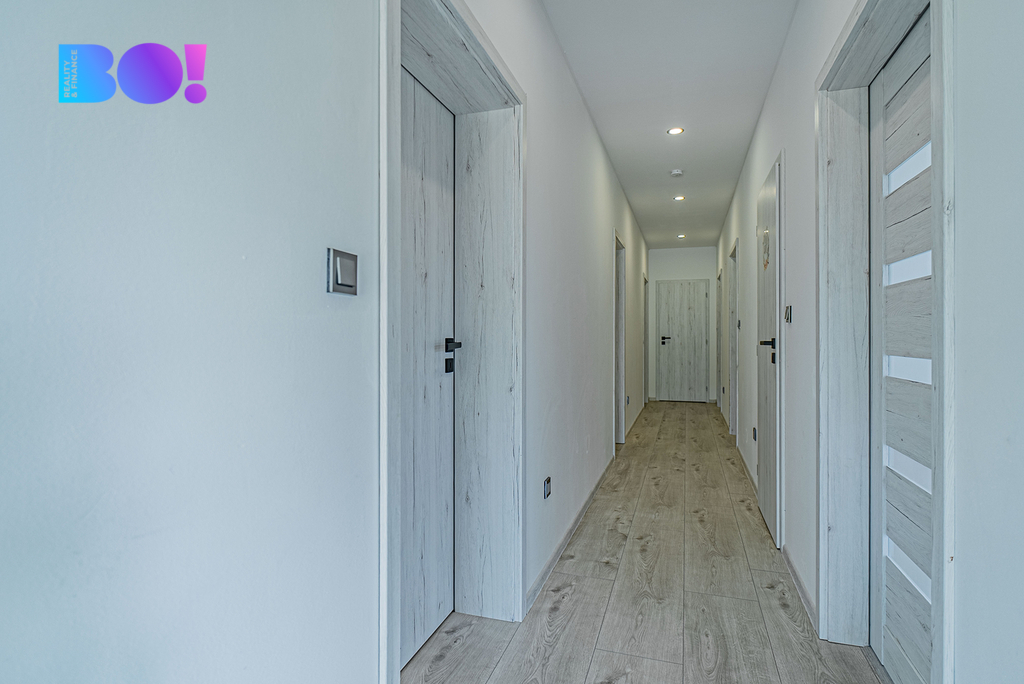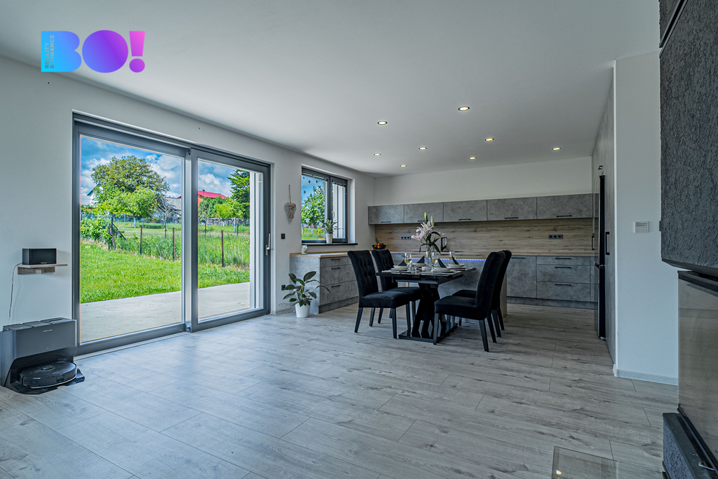 Tento moderní bungalov o dispozici 4+kk a podlahové ploše 177 m² byl zkolaudován v roce 2023 a nabízí ideální spojení funkčnosti, komfortu a příjemného designu. Dům je navržený pro každodenní život. Najdeš tu nejen prostorný obývací pokoj propojený s kuchyní a jídelním koutem, ale také tři ložnice, šatnu, technickou místnost, samostatné WC, koupelnu a praktickou místnost u vstupu, která aktuálně slouží jako botník.