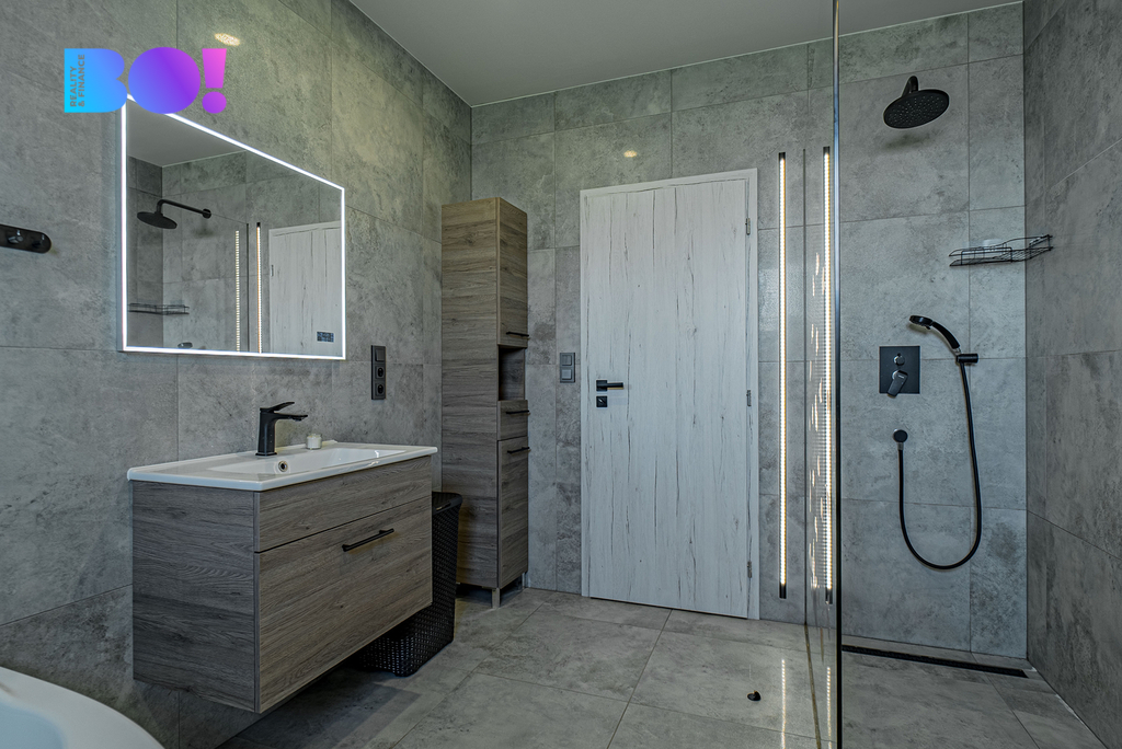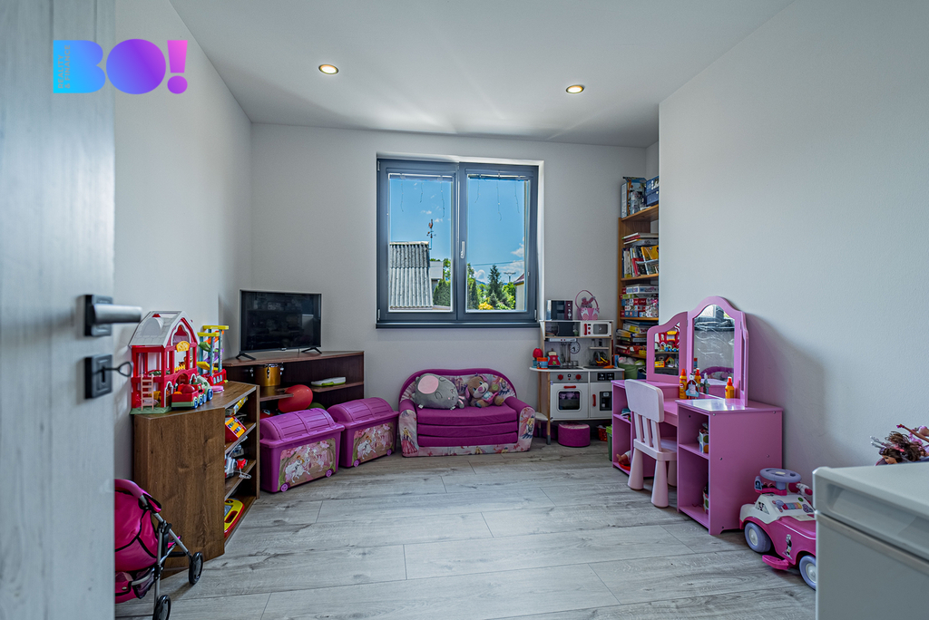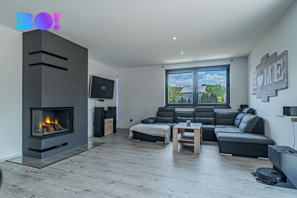 Součástí vybavení jsou také elektrické venkovní žaluzie, které zajistí soukromí i tepelný komfort, a stylový krb, který dotváří útulnou atmosféru. A pokud máš spoustu věcí? Využít můžeš i půdu, která poskytuje dostatek úložného prostoru.