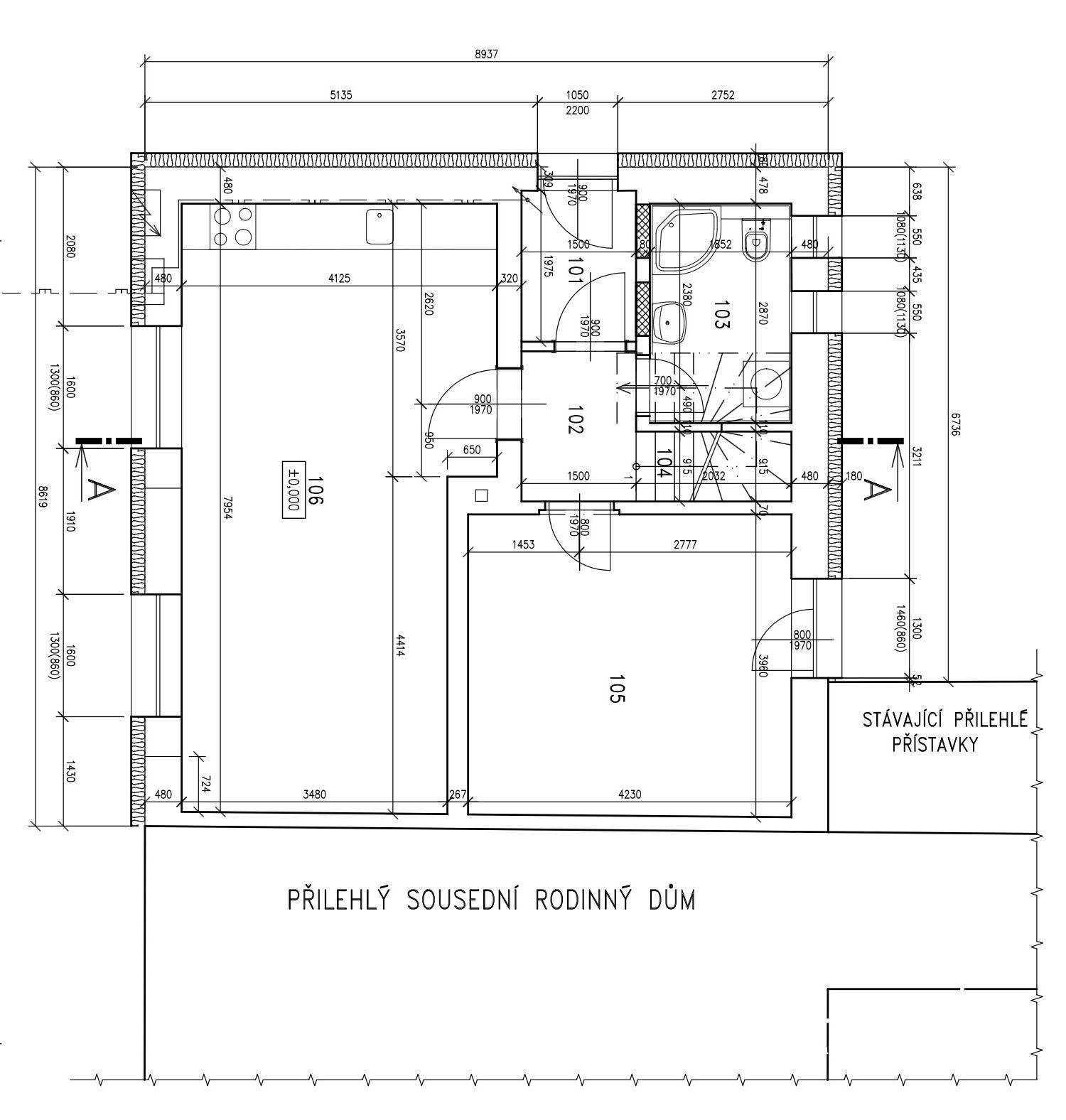 Rodinný dům má 2 nadzemní podlaží. Aktuálně je v 1. NP byt s dispozicí 2+1 s koupelnou a wc. V 2.NP je možné vybudovat podkrovní vestavbu, přičemž půda je vysoká a umožňuje bezproblémovou plnohodnotnou vestavbu dalších tří pokojů a wc, bez nutnosti zvyšovat střechu.