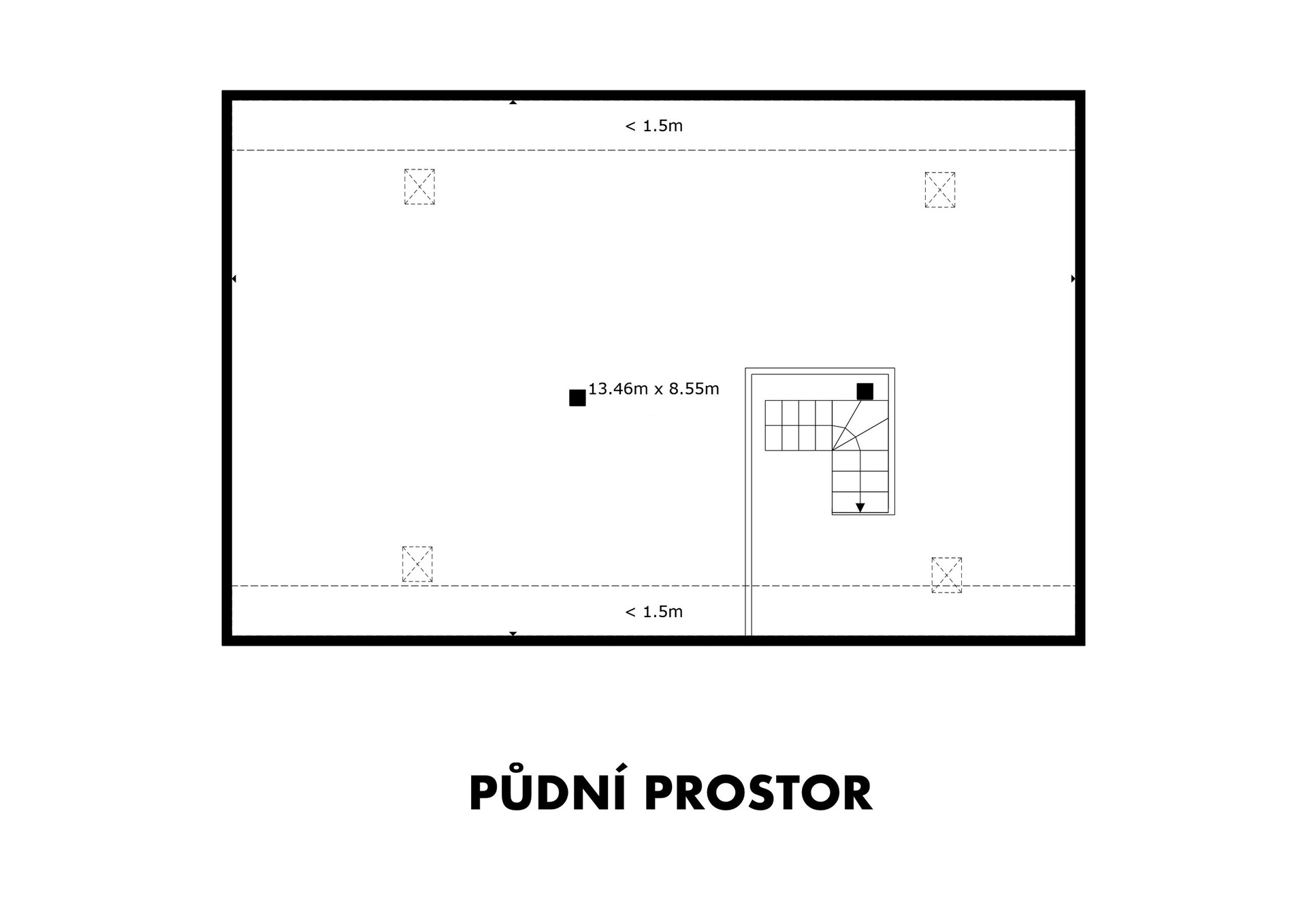 - Prostorný půdní prostor vhodný k vybudování bytové jednotky
