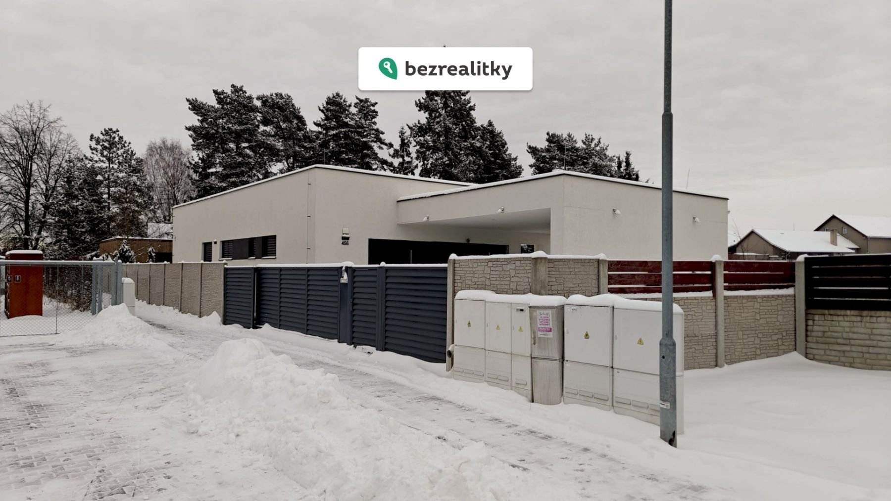 - vjezdová brána s elektropohonem a dálkovým ovládáním