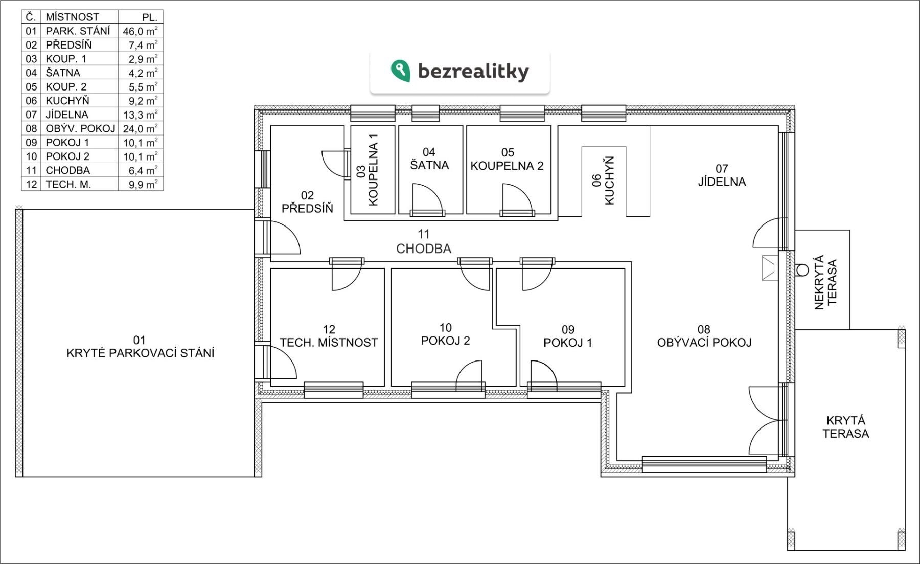 - kryté parkovací stání pro 2 auta + 1 venkovní místo