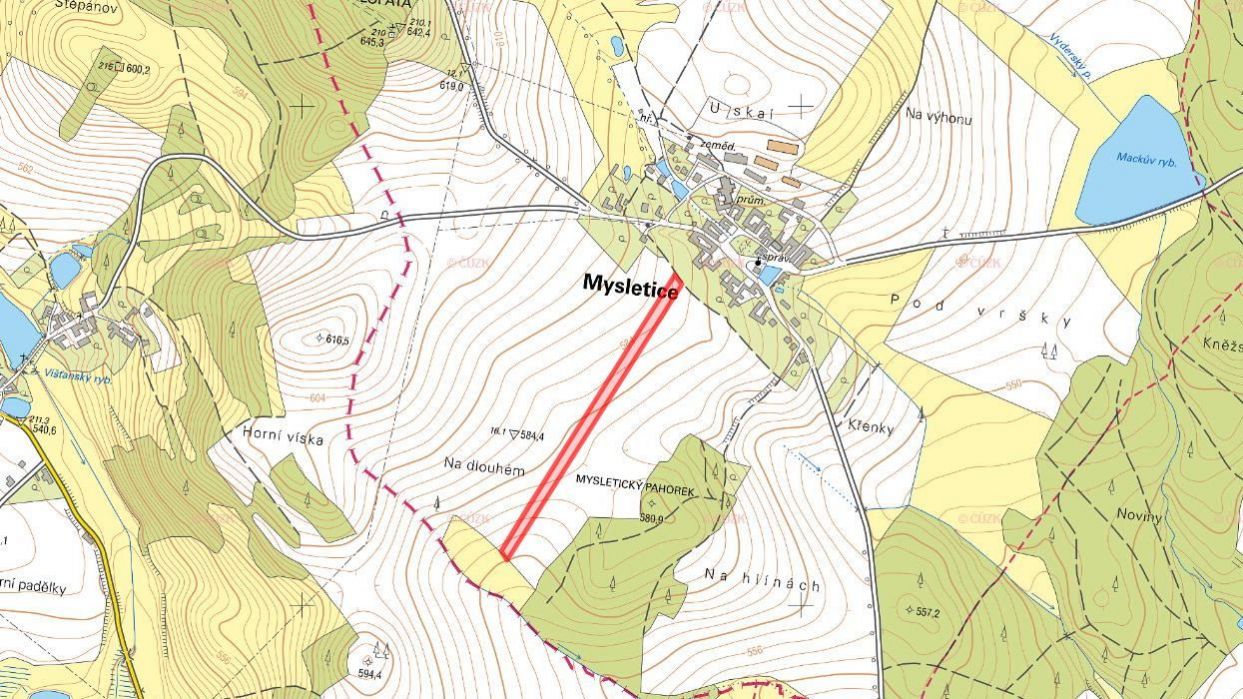Pozemek, bydlení, prodej, Mysletice, Jihlava