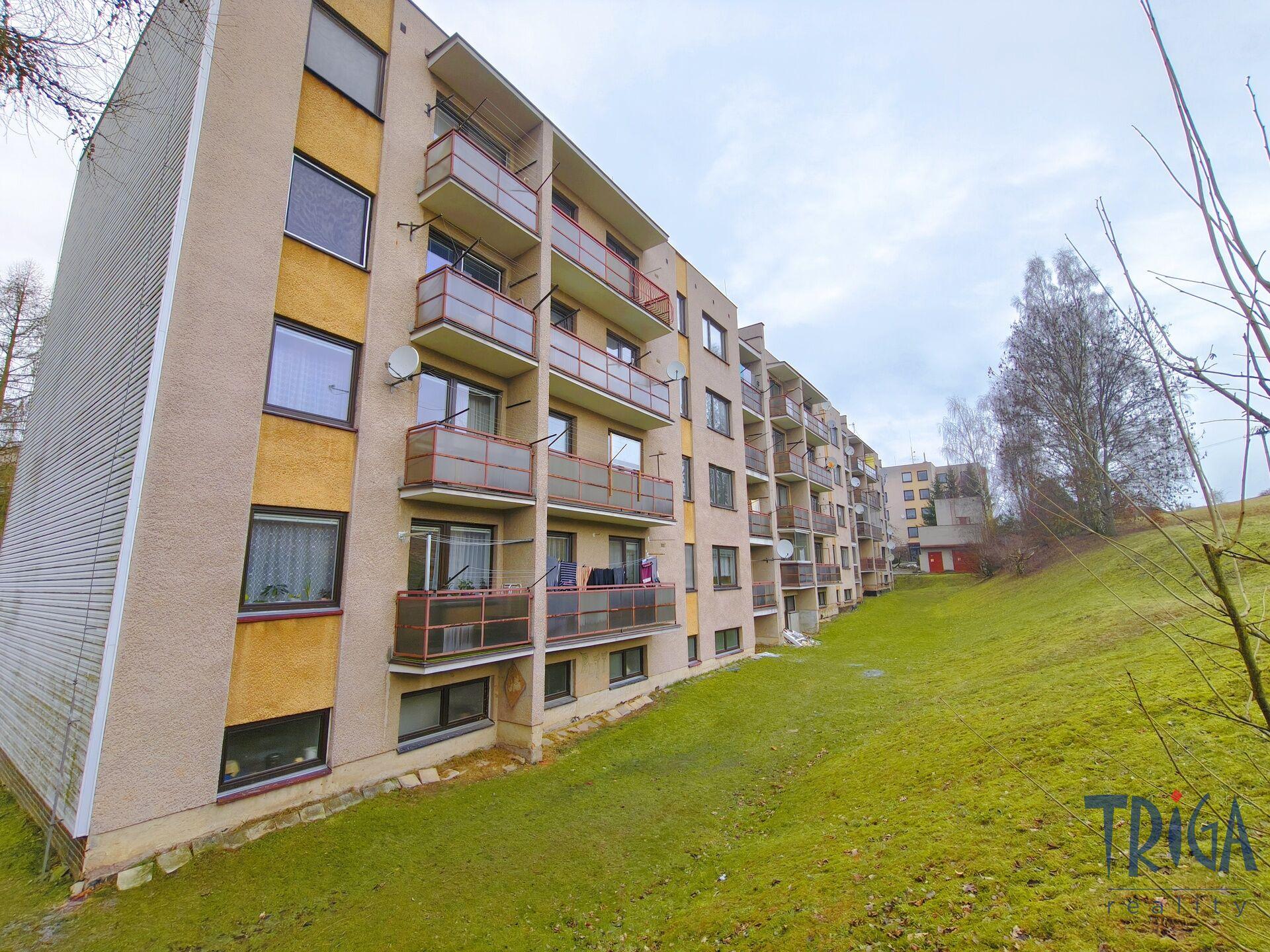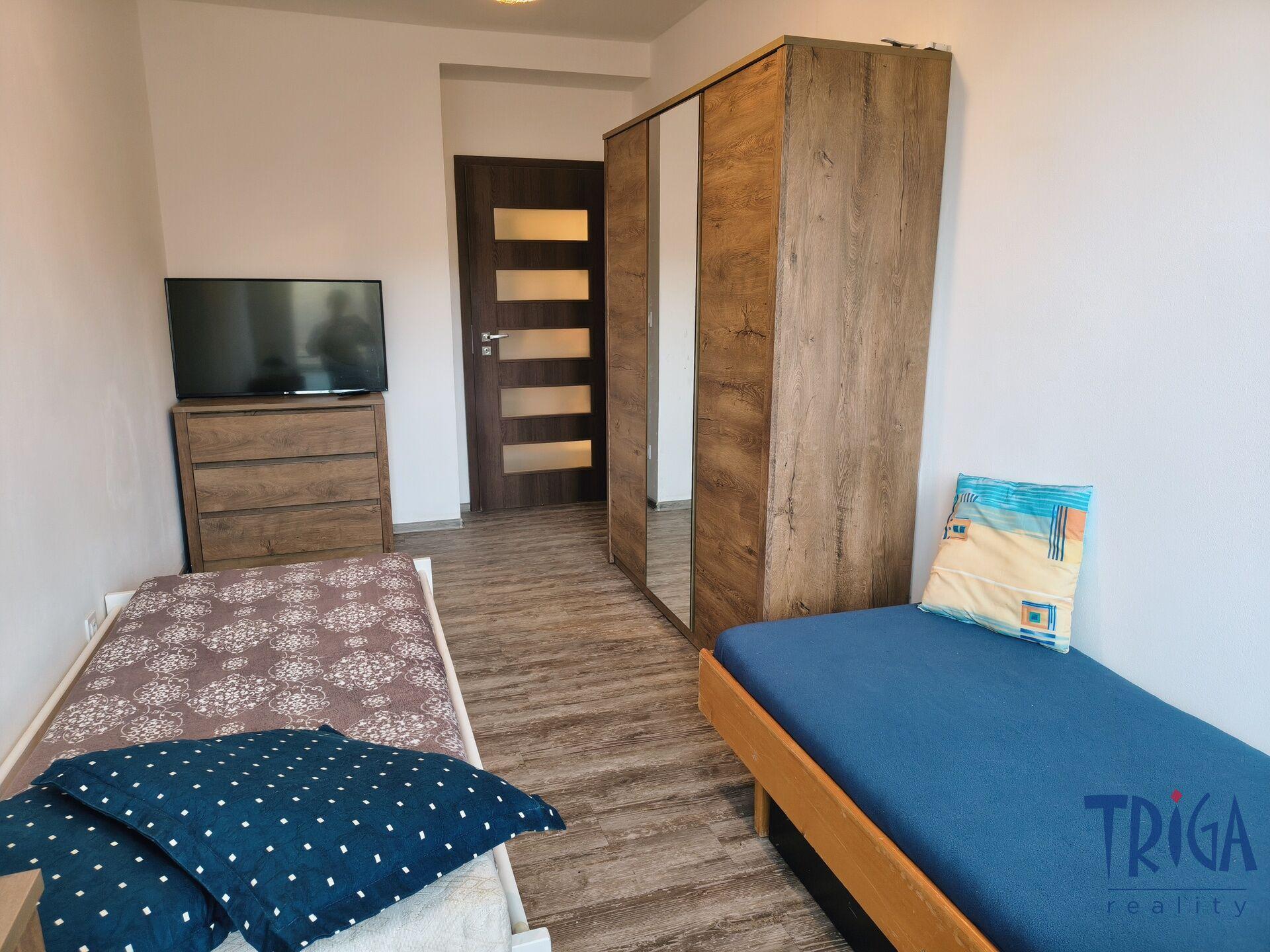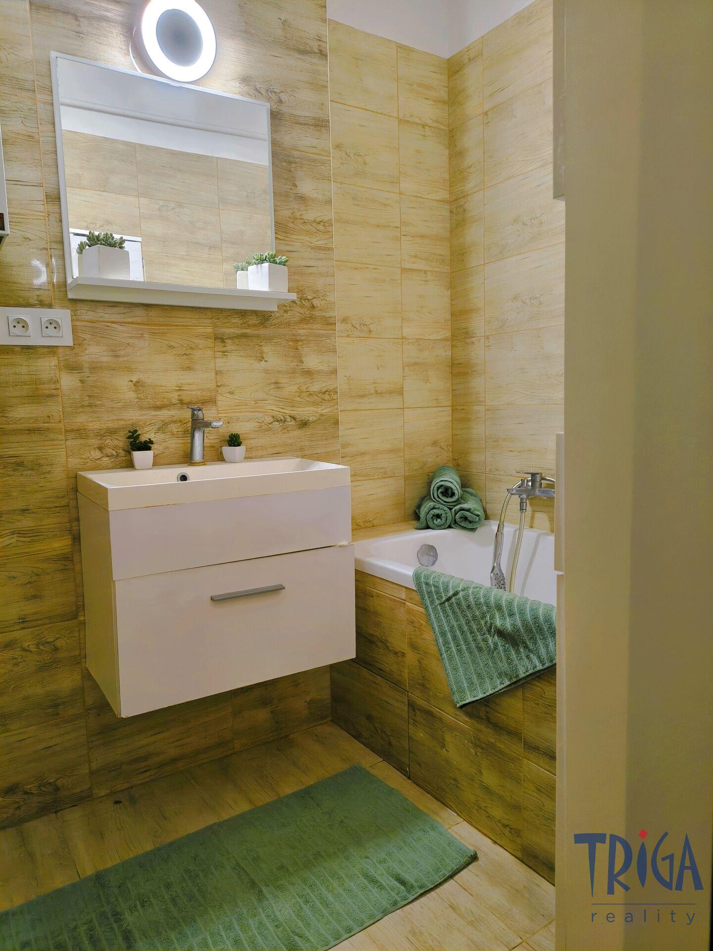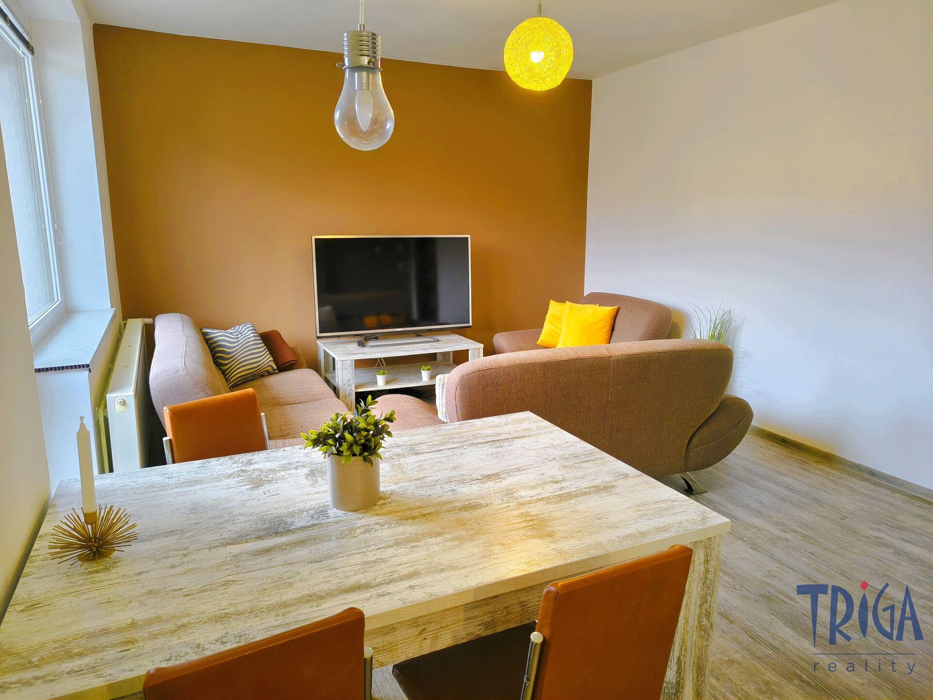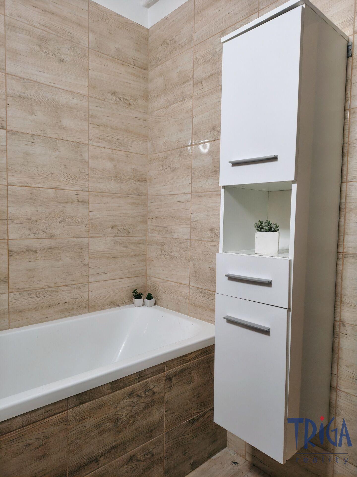 Dispozice bytu je velmi praktická a umožňuje okamžité nastěhování. Nabízí dva samostatné pokoje, kuchyňský kout propojený s obývacím pokojem, koupelnu s vanou a oddělené WC.