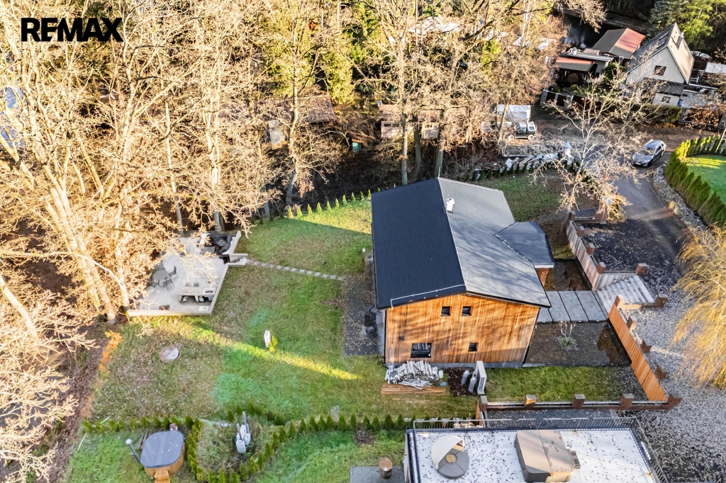Velkým benefitem této nemovitosti je privátní wellness zóna, která zahrnuje saunu, vířivku a bazén o rozměrech 6 × 3 m s pískovou filtrací a automatickým dávkováním chemie ASEKO. Na venkovní terase navazuje kompletní venkovní kuchyně a zahradní krb, ideální pro letní posezení a společenské akce.