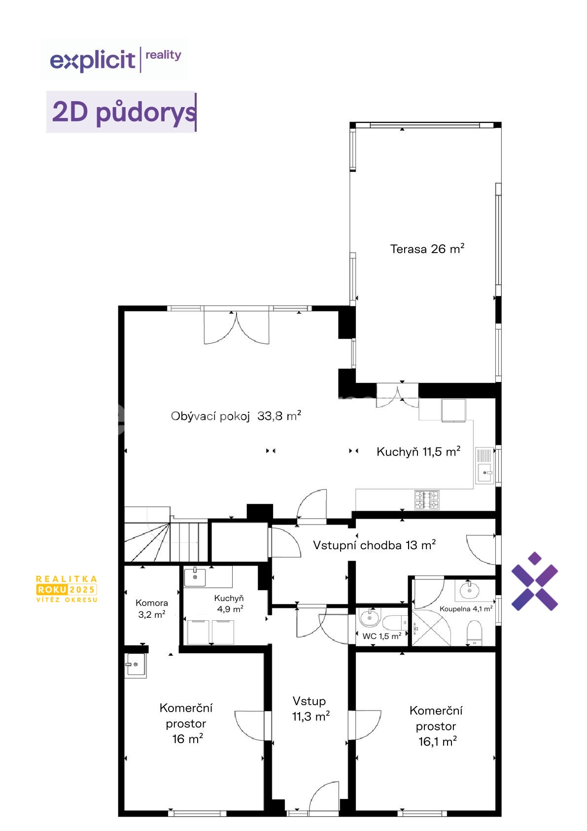 Nebytová část má vlastní samostatný vstup a zároveň je propojená s obytnou částí domu, což otevírá široké možnosti využití. Dispozice zahrnuje 2 samostatné místnosti, menší kuchyňku a toaletu. Prostor je aktuálně využíván pro masáže a kosmetické služby a je připravený k okamžitému podnikání. Zároveň nabízí potenciál pro úpravu na samostatnou bytovou jednotku k pronájmu nebo přizpůsobení dle vlastních potřeb.